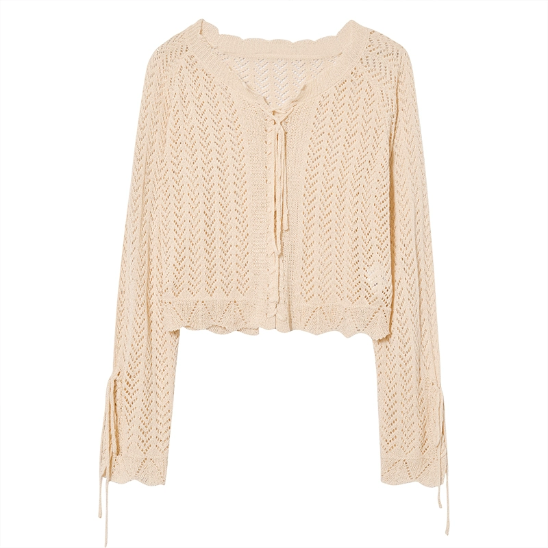 | nameOriginal | Mimuzi's homemade apricot v-neck knitted cardigan jacket for women in summer, lazy and sweet loose long-sleeved top |