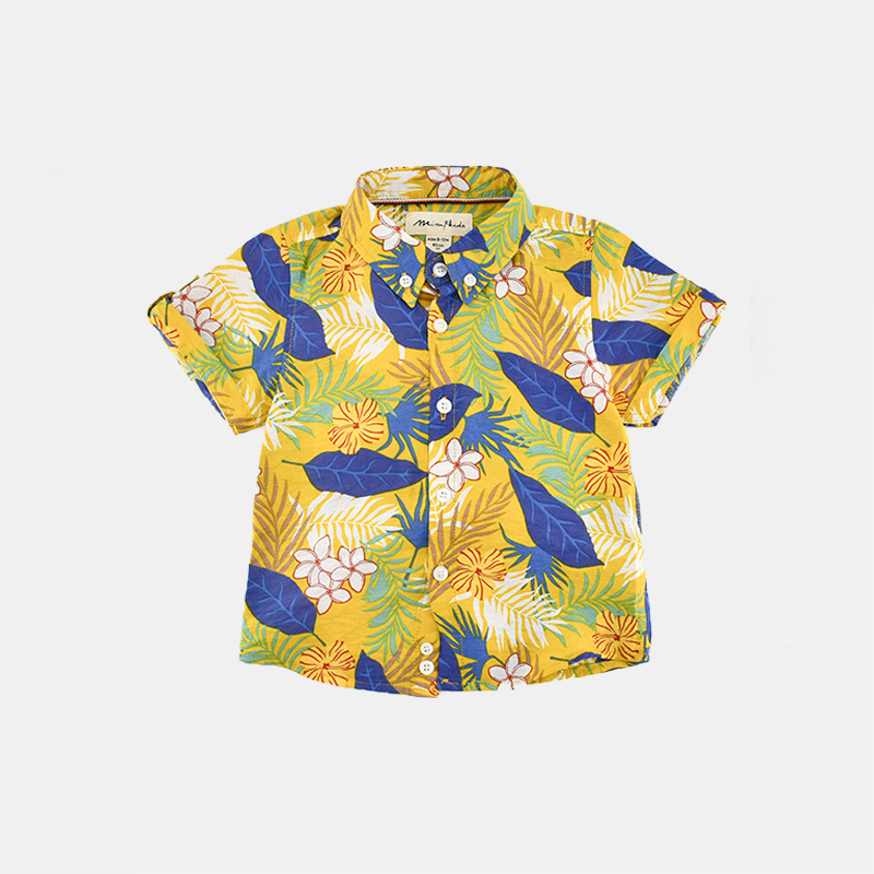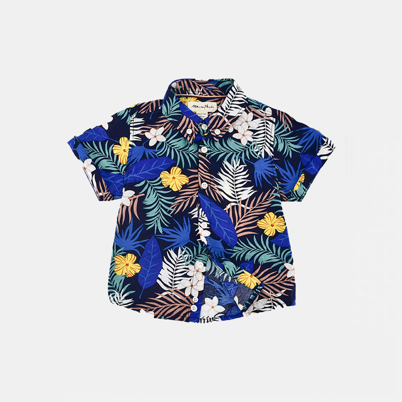 MIMY boy’s shirt 2024 new medium and large children’s Hong Kong style children’s flower shirt retro seaside beach vacation set