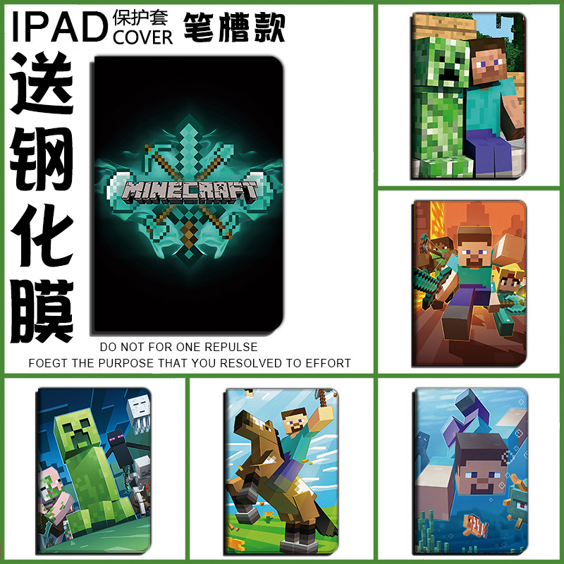 Minecraft suitable for ipad protective case 2019 air3 shell 10.2 inch 2018/2020 model 9.7 with pen slot 12.9mini4 Apple 5th generation 1 mini 2 tablet 10.5 creeper pro11
