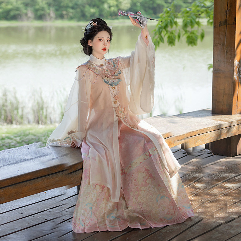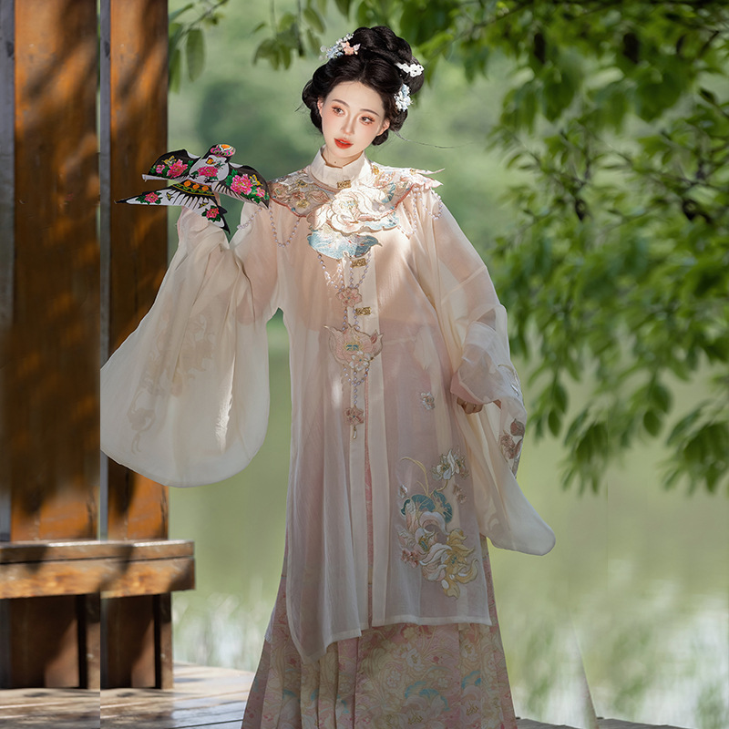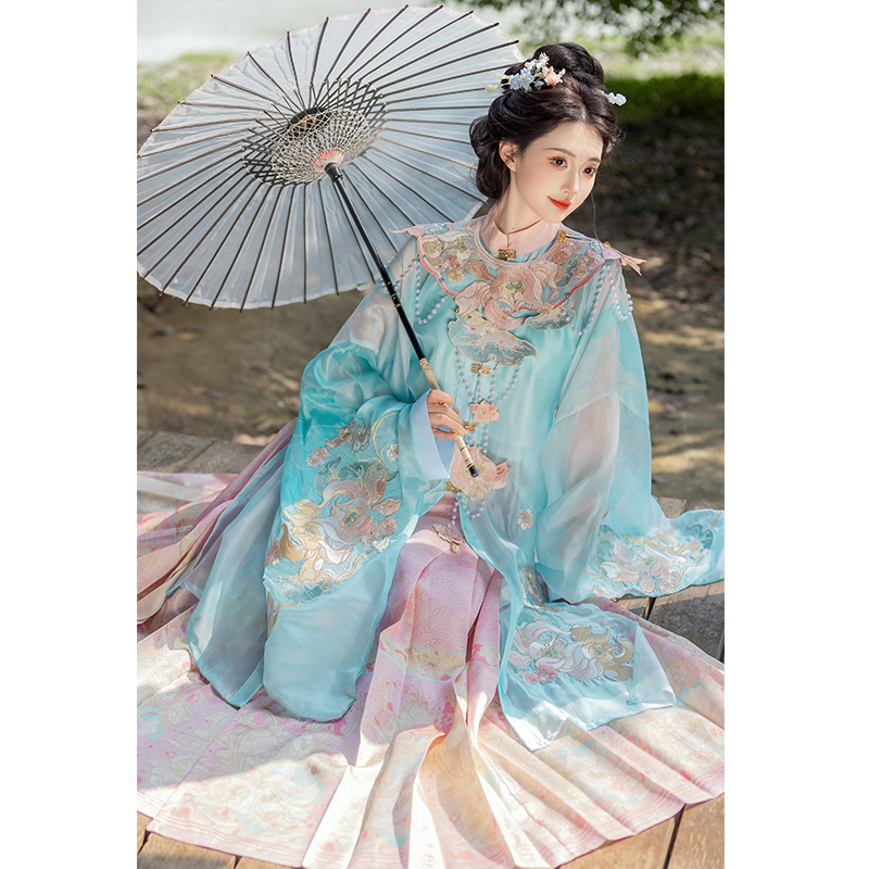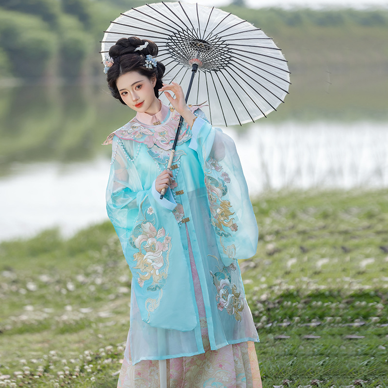 Ming-made Cloud Shoulder Hanfu Women’s Horse-faced Dress 2024 New Guofeng Heavy Industry Embroidered Vertical Collar Pair Long Shirt Super Fairy Ancient Dress