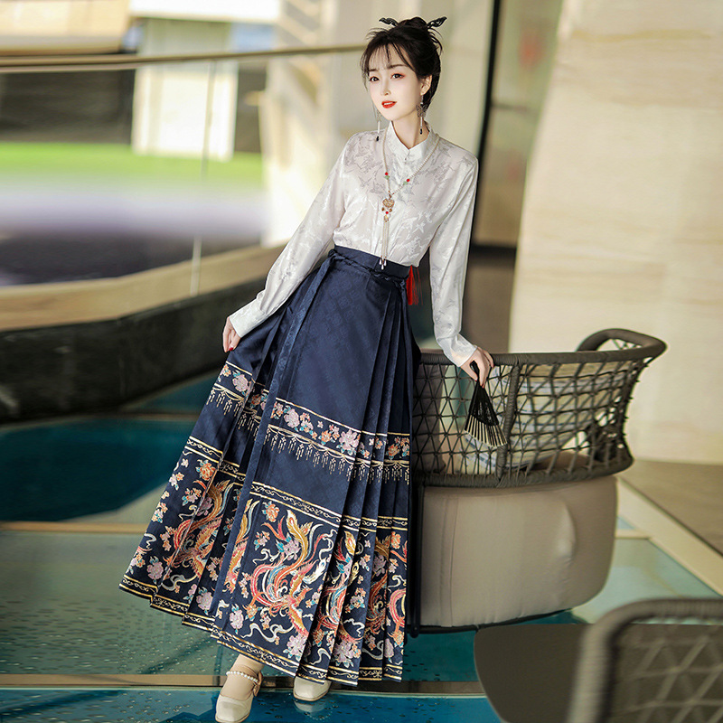 Ming-made Hanfu Women's 2024 New Fengque Improved Daily Commuting New Chinese Style National Style Weaving Gold Horse Face Skirt suit