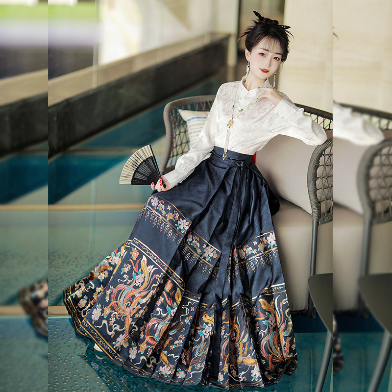 Ming-made Hanfu Women’s 2024 New Fengque Improved Daily Commuting New Chinese Style National Style Weaving Gold Horse Face Skirt suit