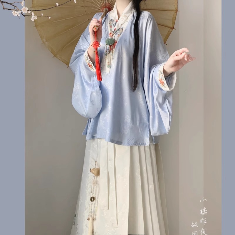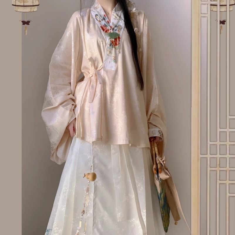 Ming-made Original 2024 New Arrival Hanfu Women’s Chinese-style Double-on Short Shirt with Collar Spring Two-piece Set