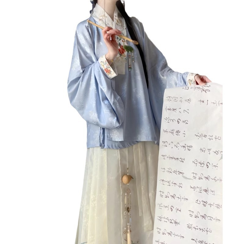 Ming-made Original 2024 New Arrival Hanfu Women's Chinese-style Double-on Short Shirt with Collar Spring Two-piece Set