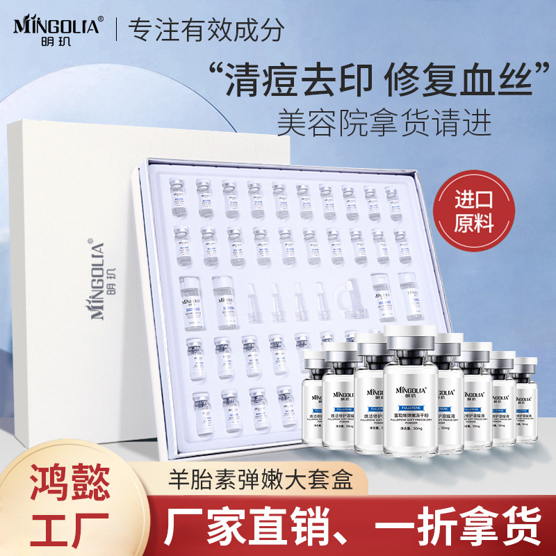 Mingqian fullerene freeze-dried powder set box repair acne removing sheep placenta brightening skin color firming and rising and failing factory wholesale