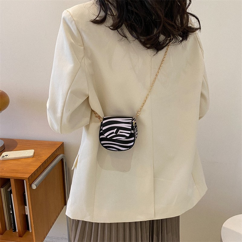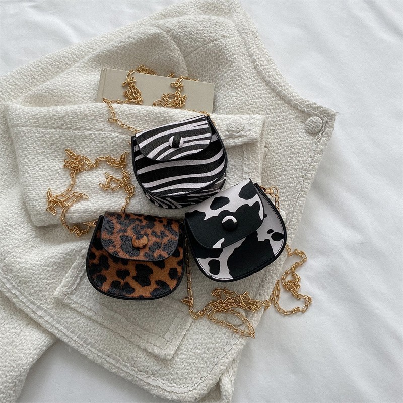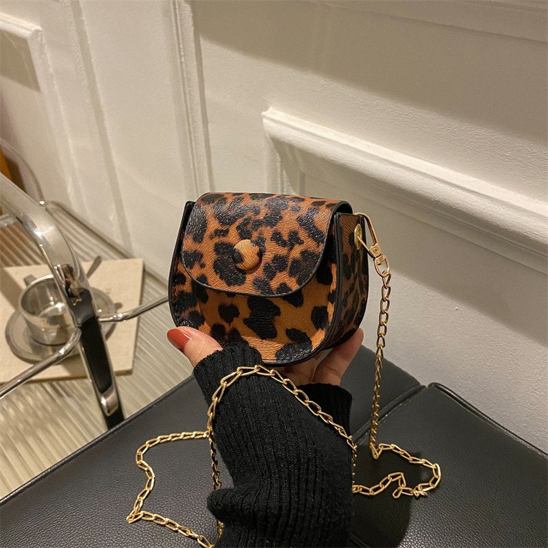 Mini Bag Women’s Semi-circular ins Girl’s Heart Leopard Print Red Bag 2022 New Chain Shoulder Crossbody Small Bag