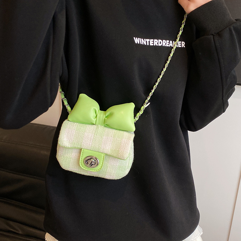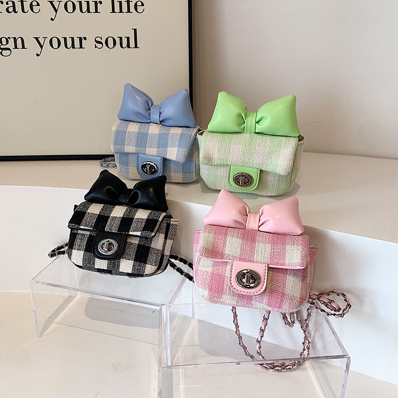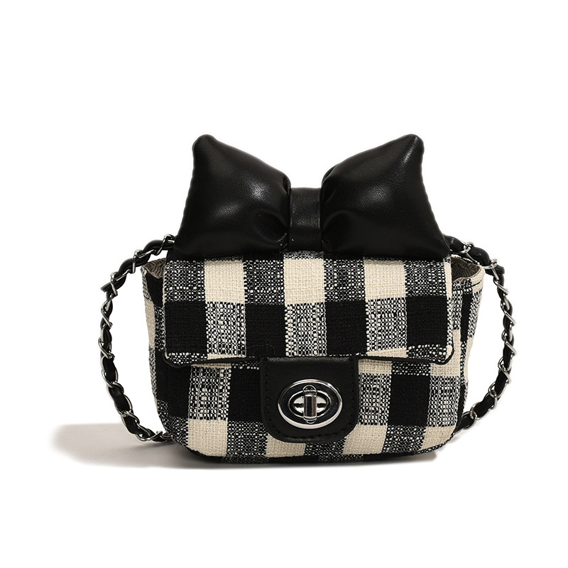 Mini Bow Small Bag Women's 2024 New Fashion Plaid Shoulder Small Square Bag Trendy Chain Lipstick Crossbody Bag