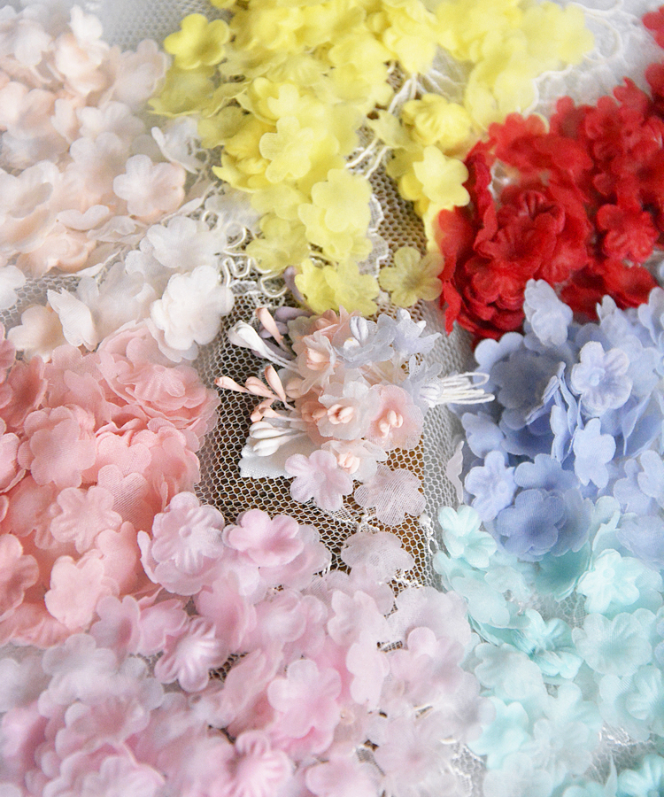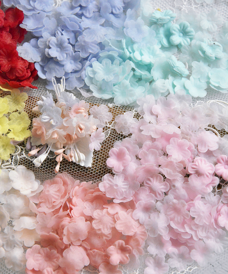 . Mini crumpled organza petal accessories Barbie clothing headdress material handmade three-dimensional flower flower sheet