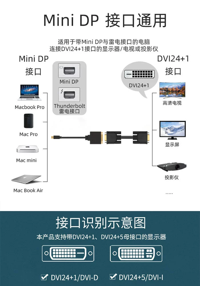 | nameOriginal | Mini dp to DVI adapter cable Mini displayport converter notebook Surface Apple Mac thunderbolt interface connected to projector display |