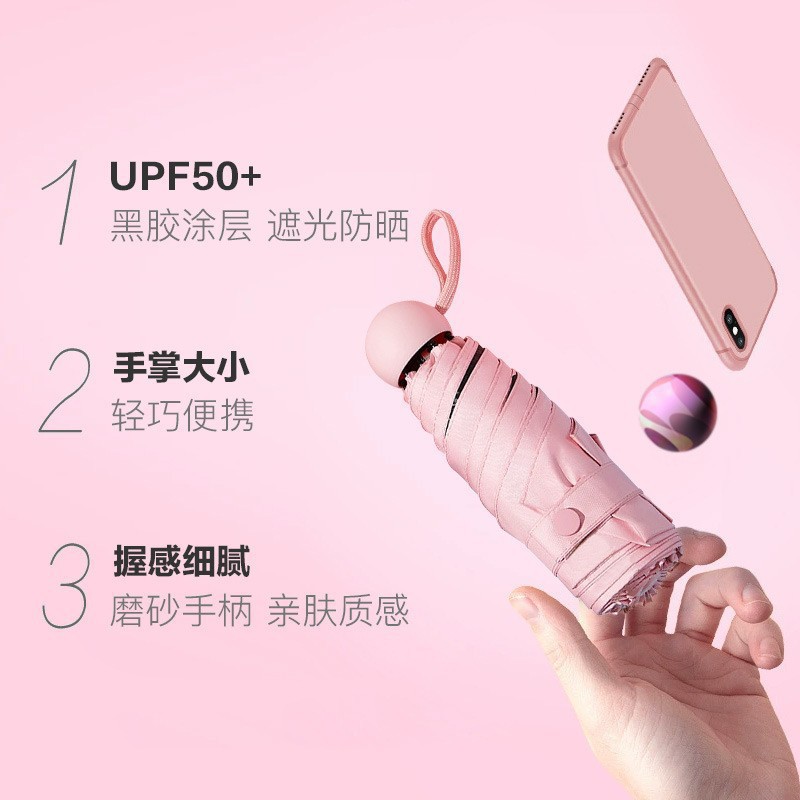 | nameOriginal | Mini five-fold sun umbrella thickened black glue sun protection umbrella Women's Small portable dual-use capsule umbrella printing |