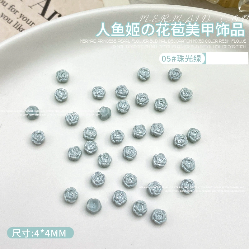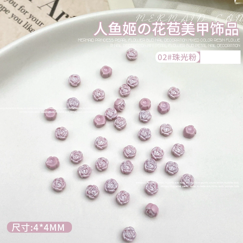 Mini flower mermaid bud nail art jewelry rose camellia pearlescent white pink purple small flower diamond jewelry