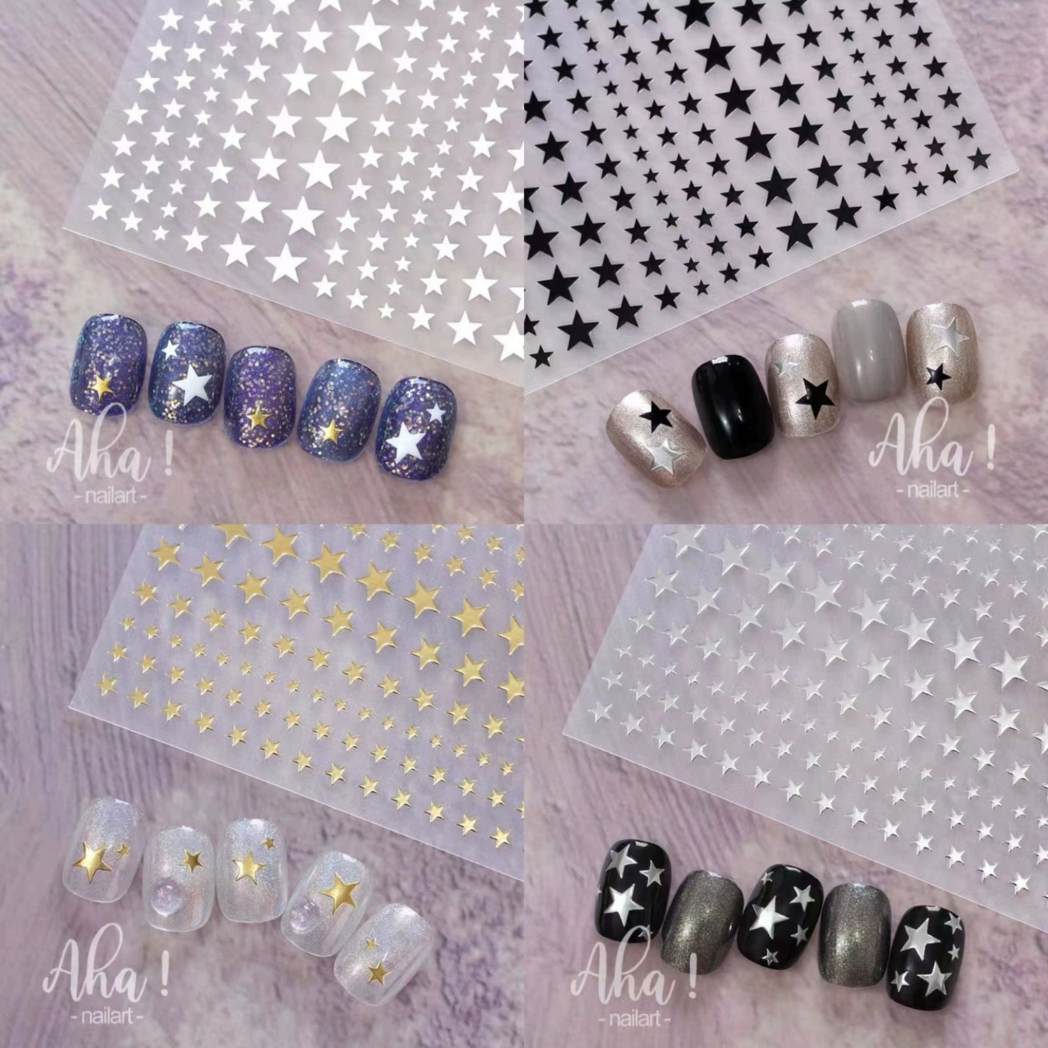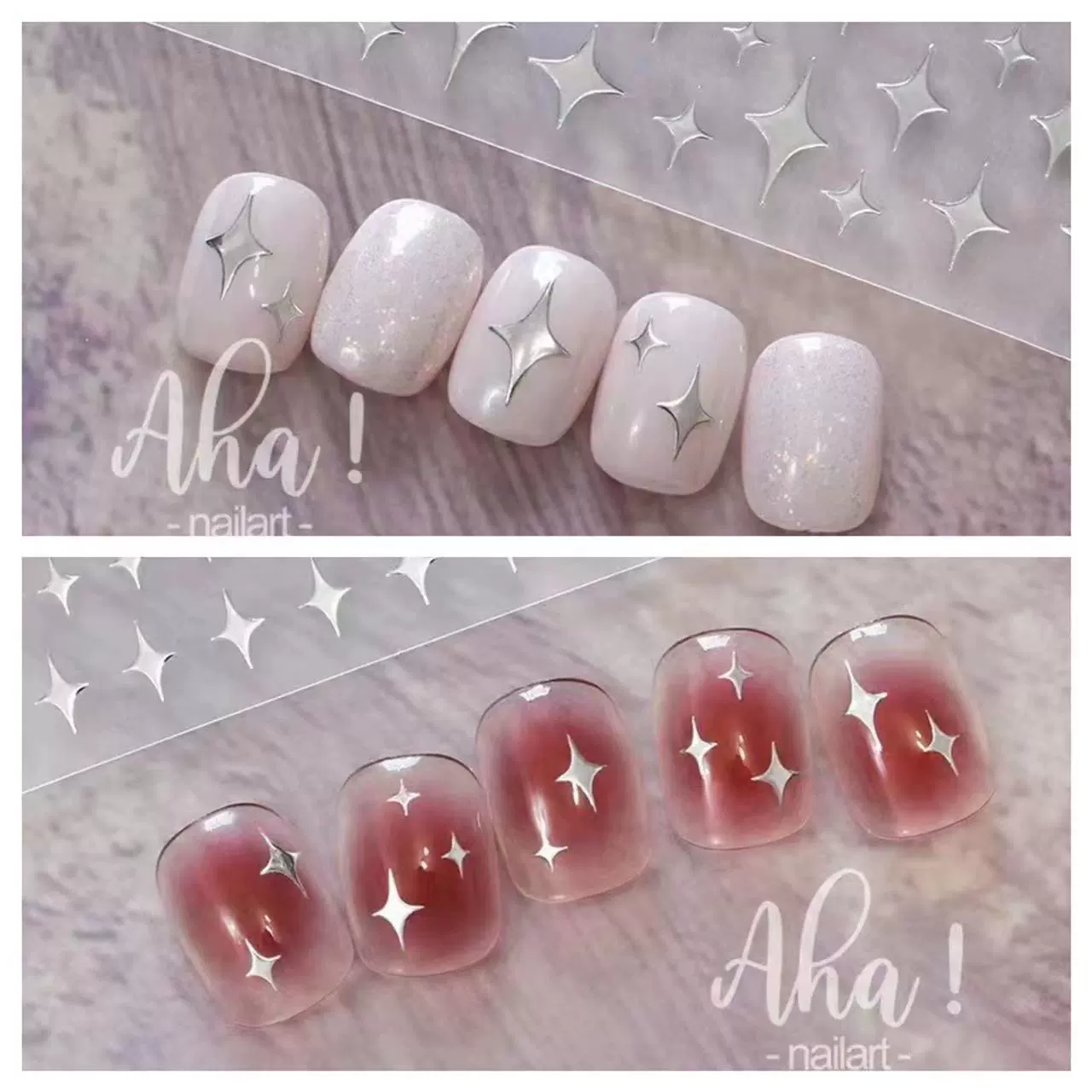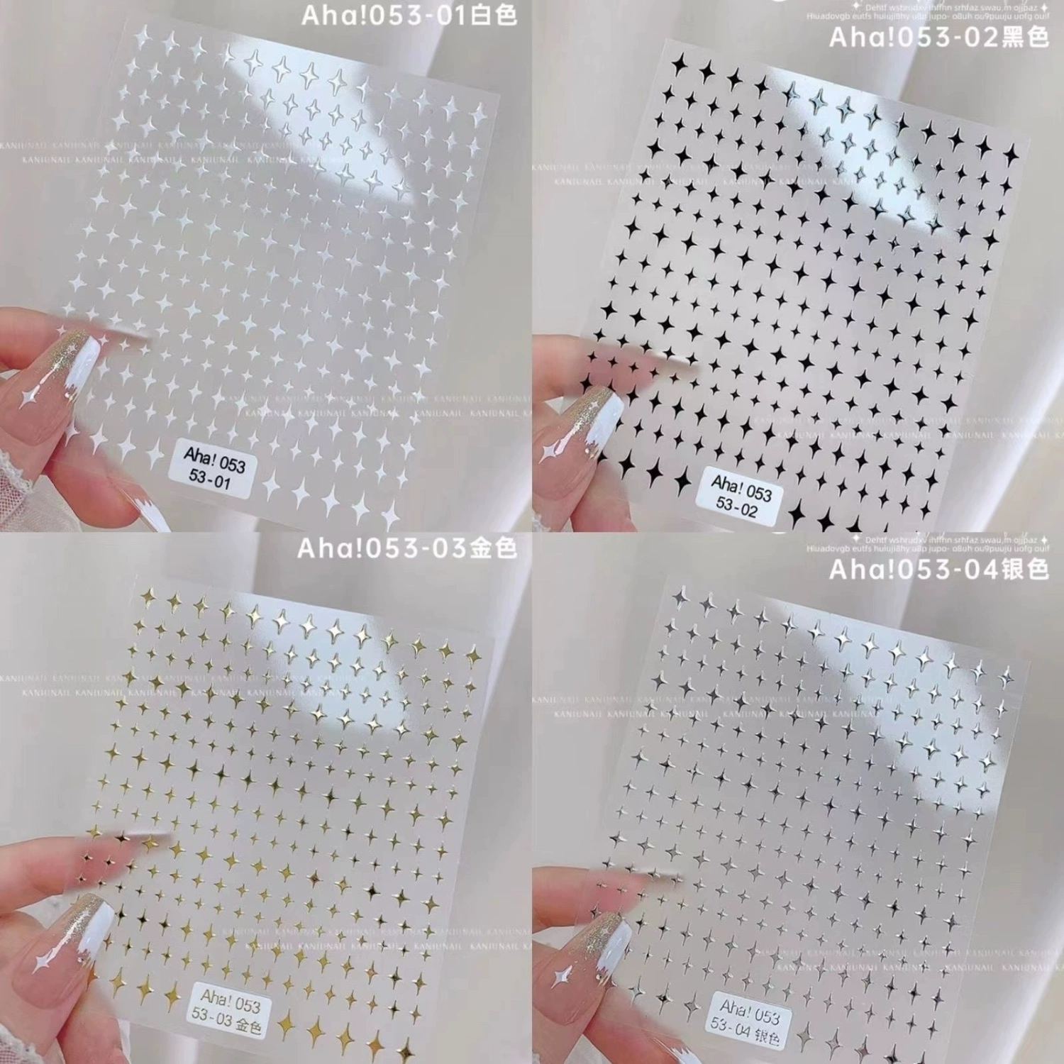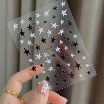 | nameOriginal | Mini four-pointed star hot stamping black and white small manicure stickers |