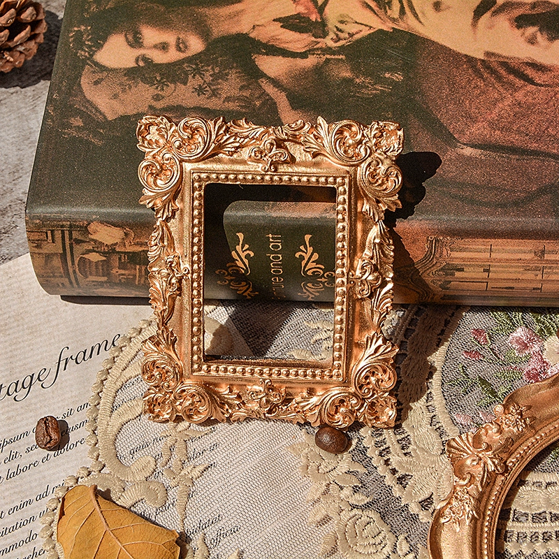 Mini golden small photo frame photo props, ins retro European photo frame relief, manicure and earrings photo props