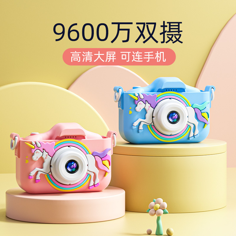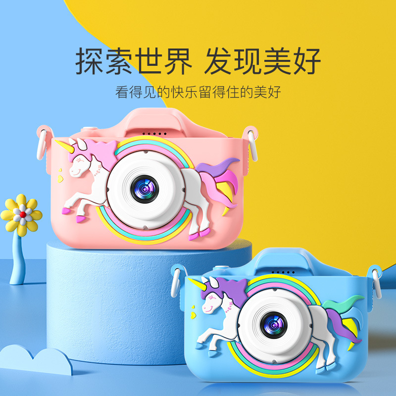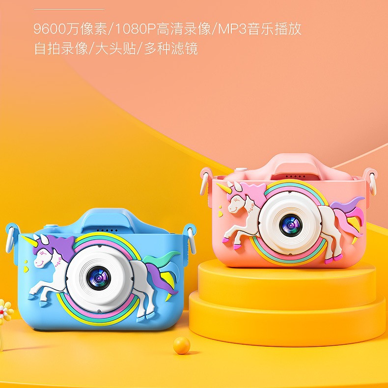 Mini HD Digital Children's Camera Unicorn Cartoon Front and Back Double Photograph Recordable Children's Camera Birthday Gift