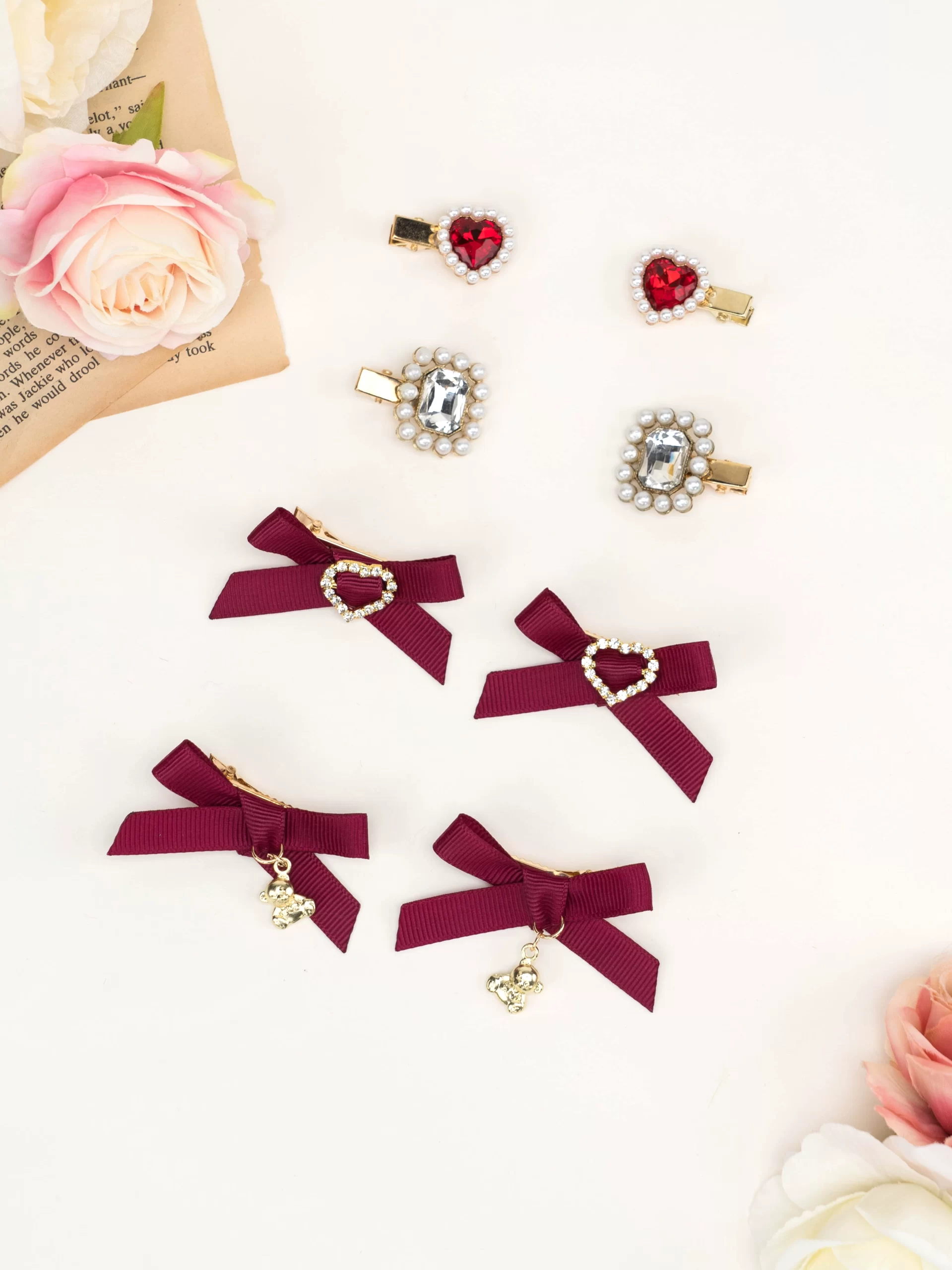 Mini Japanese Girl Bear Love Bow Hair Clip