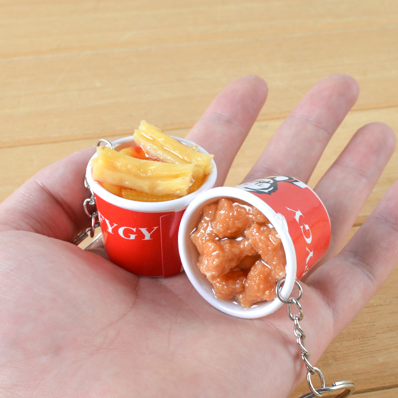 | nameOriginal | Mini KFC family bucket simulation food and play keychain personality KFC bag pendant PVC simulation food ornaments |