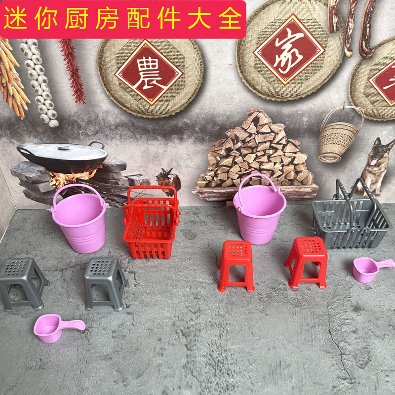 | nameOriginal | mini kitchen children's kitchenette play house toy accessories small bucket stool vegetable basket ladle ornaments |
