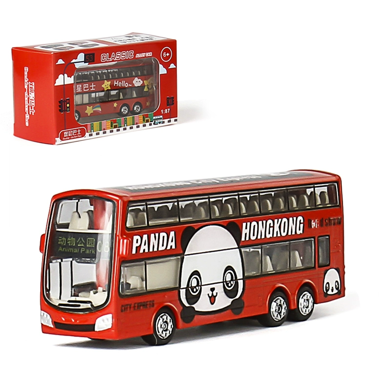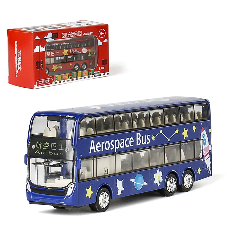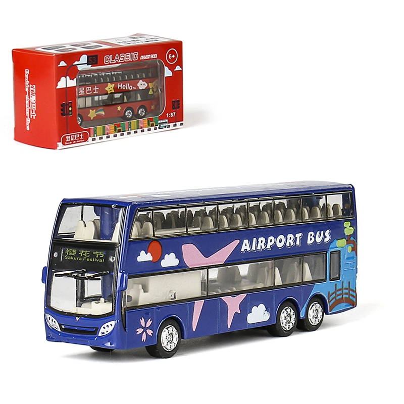 Mini portable bus metal simulation 1/87 double-decker bus pull-back alloy car model toy