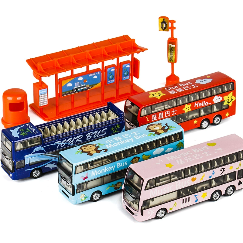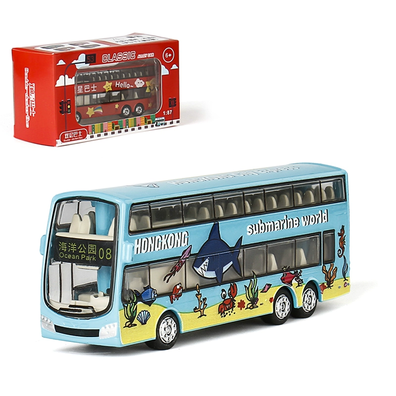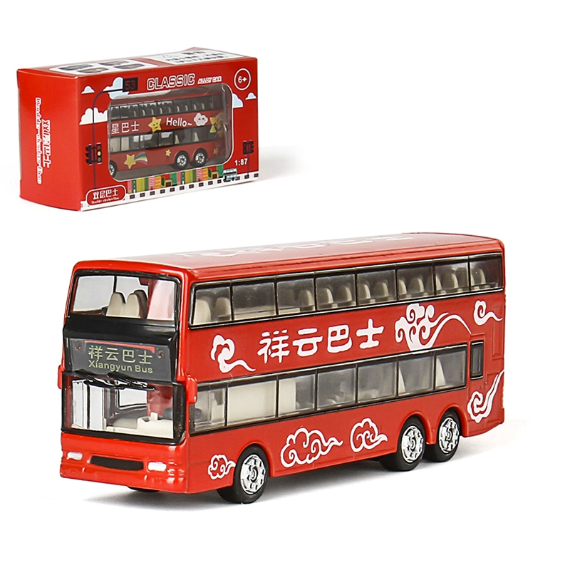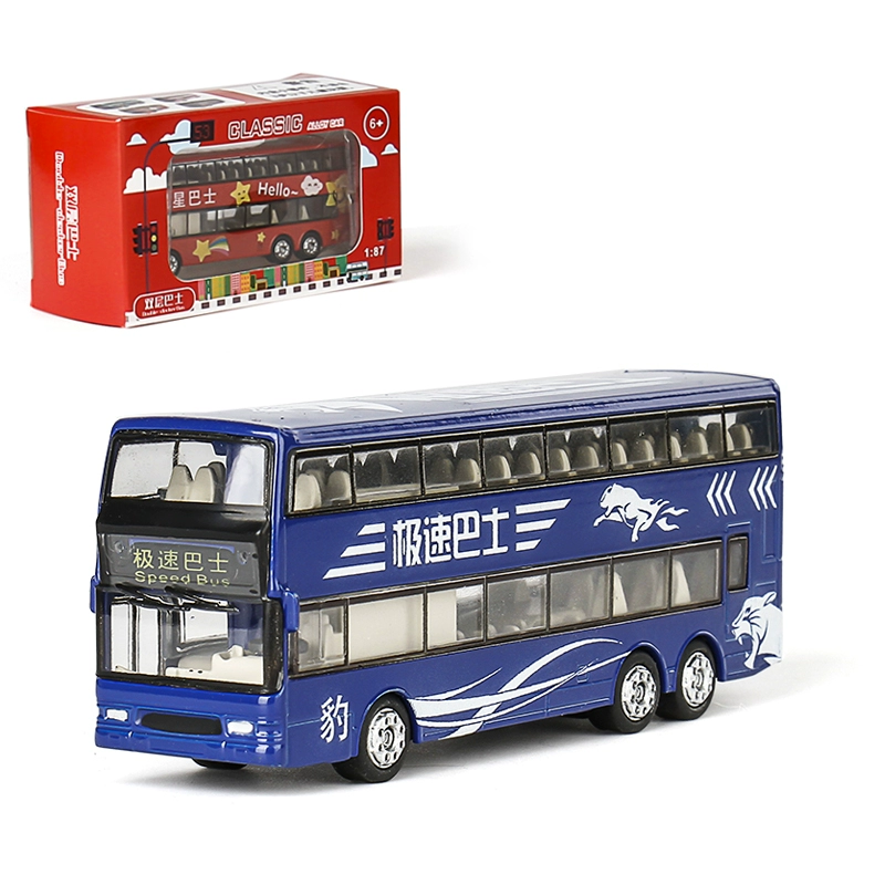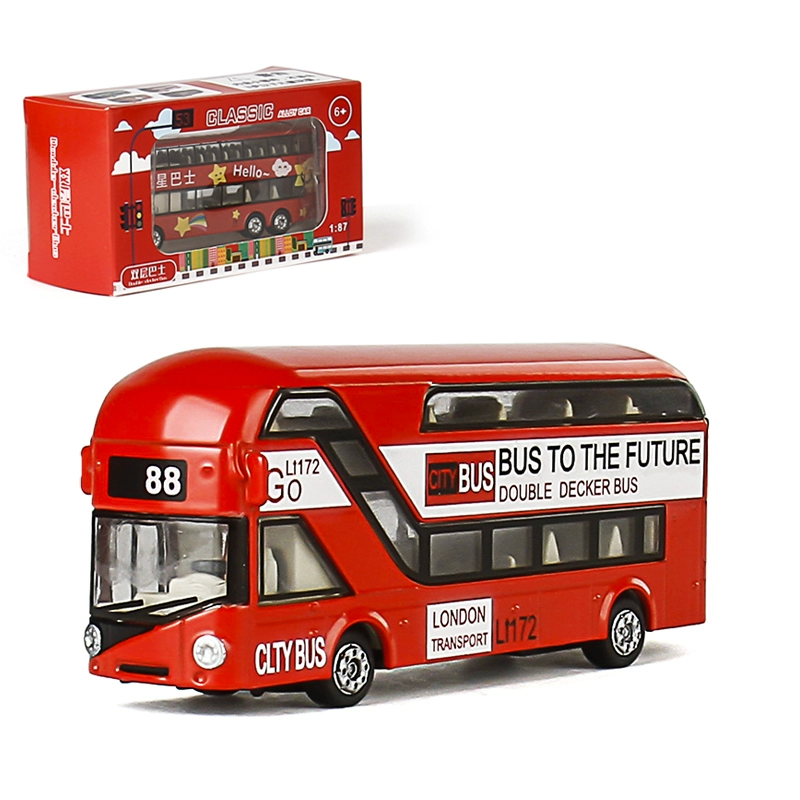 Mini Carrying Mini Bus Metal Simulation 1/87 Double Decker Bus Bus Back-Energy Alloy Car Model Toys