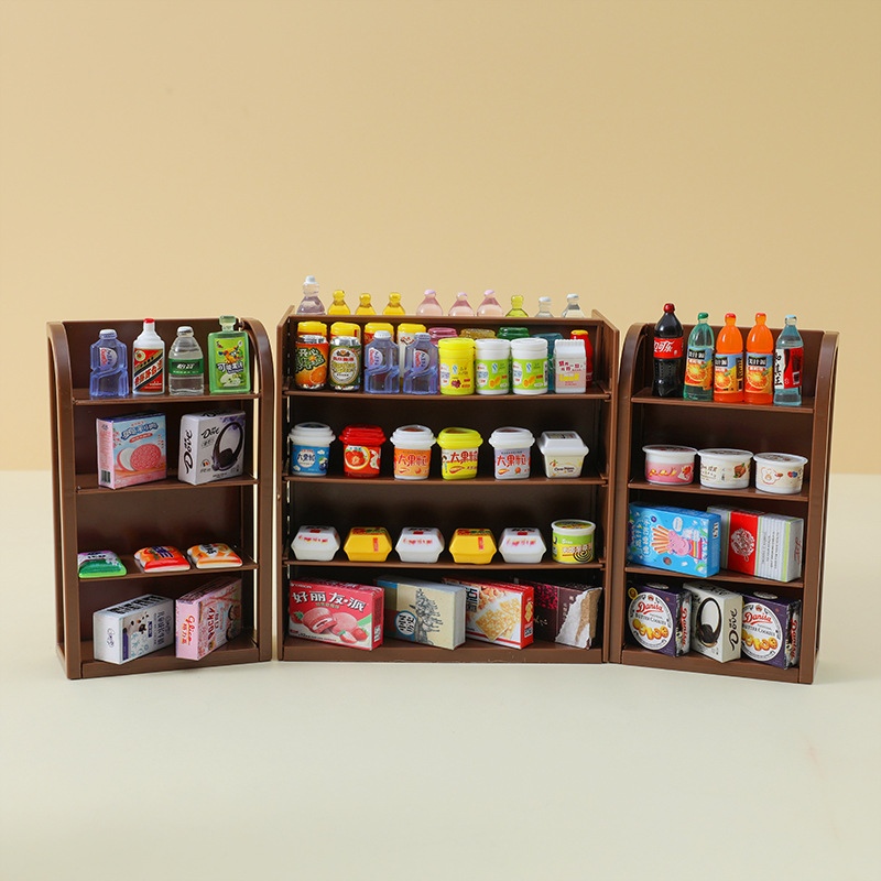 Mini Simulation Supermarket Four-sided Shelf Mini Miniature Display Rack Doll House Play House Toys Food and Play Small Shelf