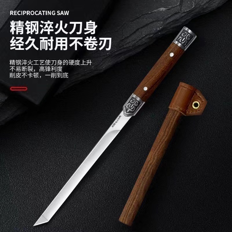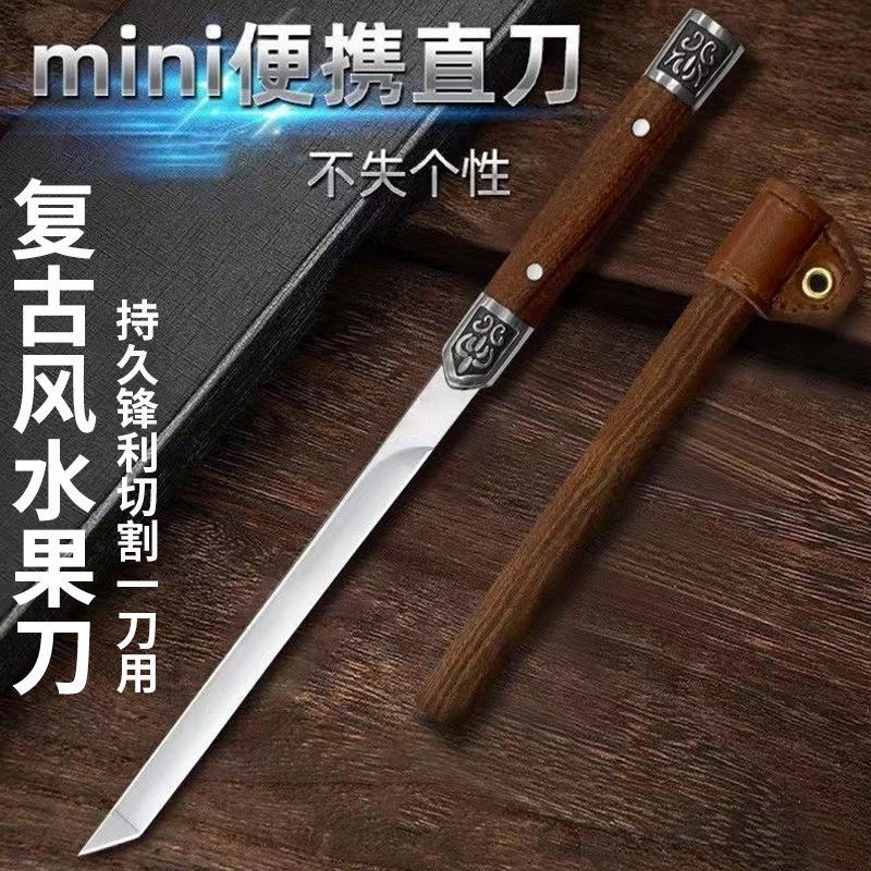 Mini Straight Knife M390 Sour Branches Wood Grain Outdoor Portable Fruit Knife Sharp Slicing Chopper Household Grinding Knife