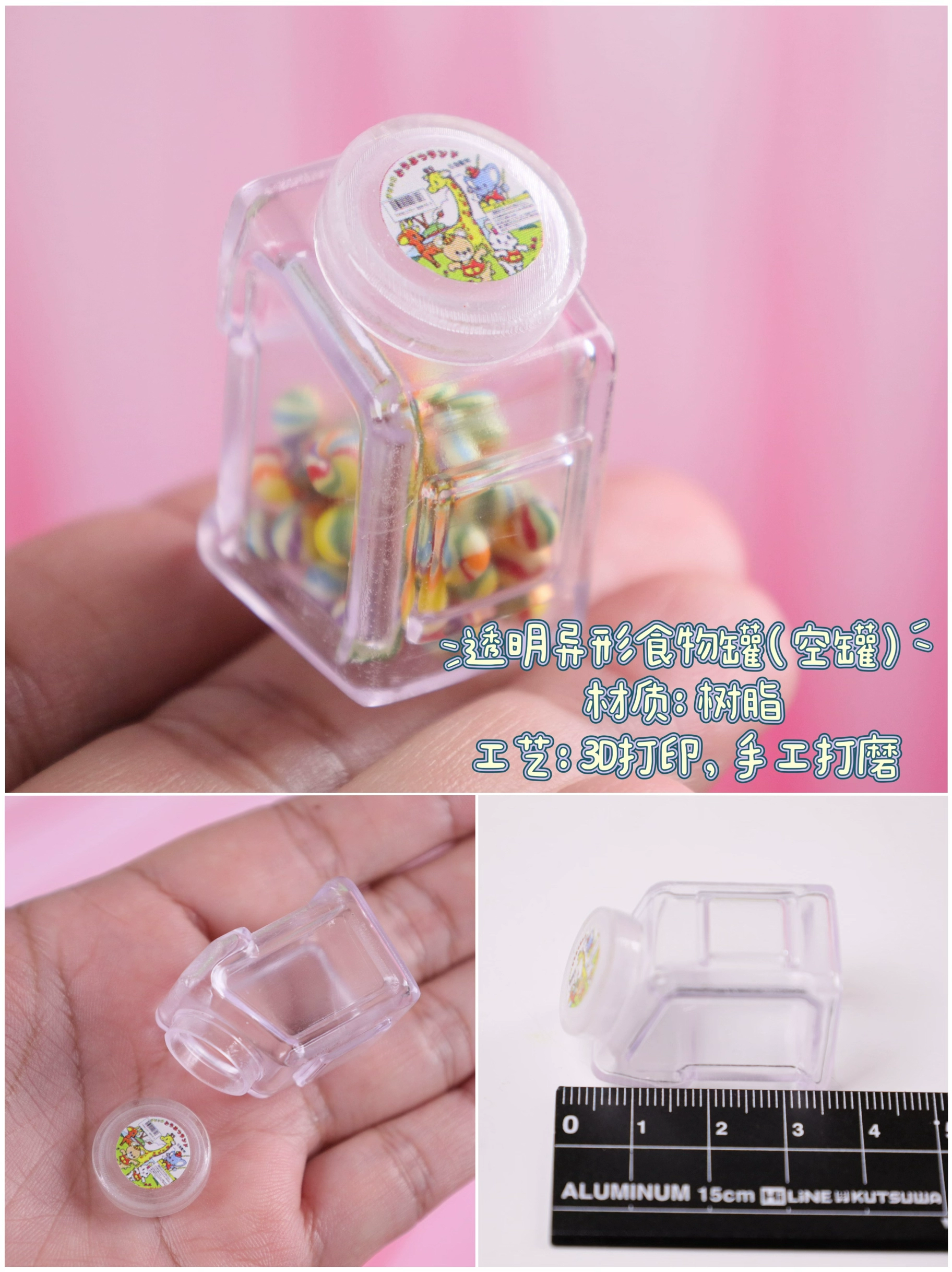 Mini micro -shrinking food cans, confectional can, transparent can snack box Rainbow candy capsule puppy house scene model