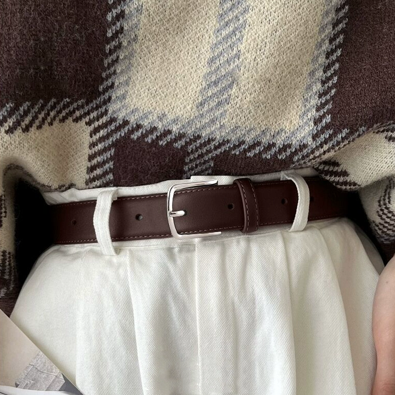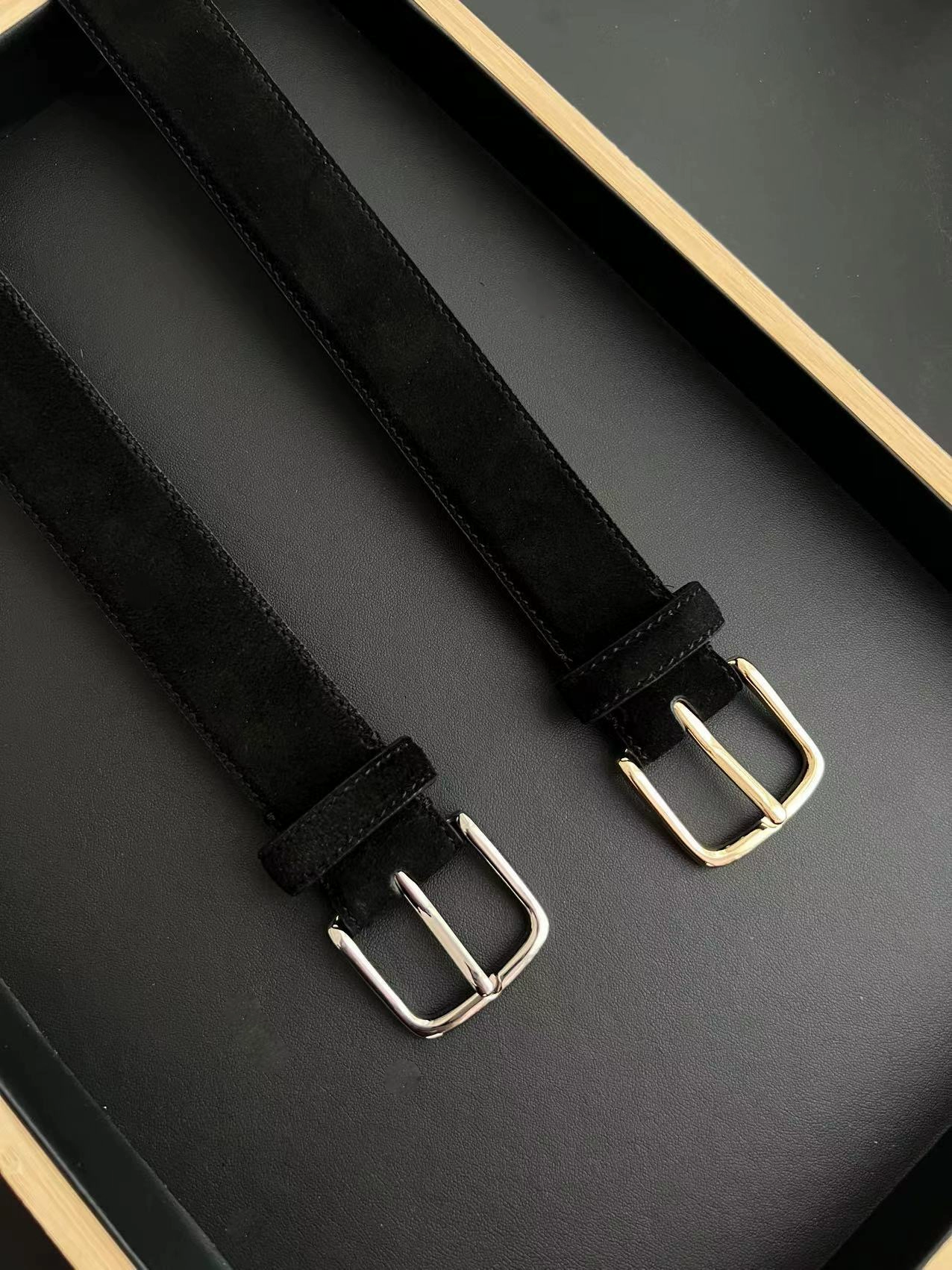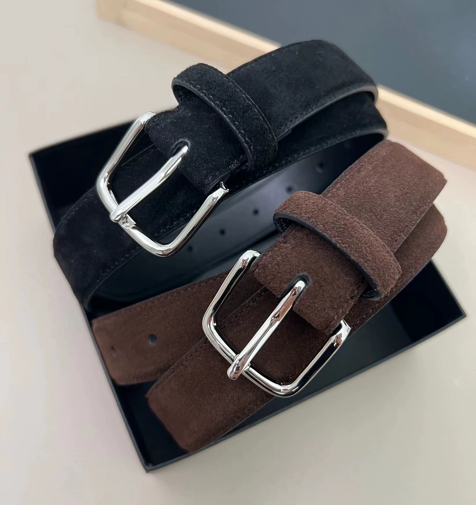 Minimalist advanced row basic model classic square buckle cowhide unisex wide belt first layer cowhide silver buckle belt versatile