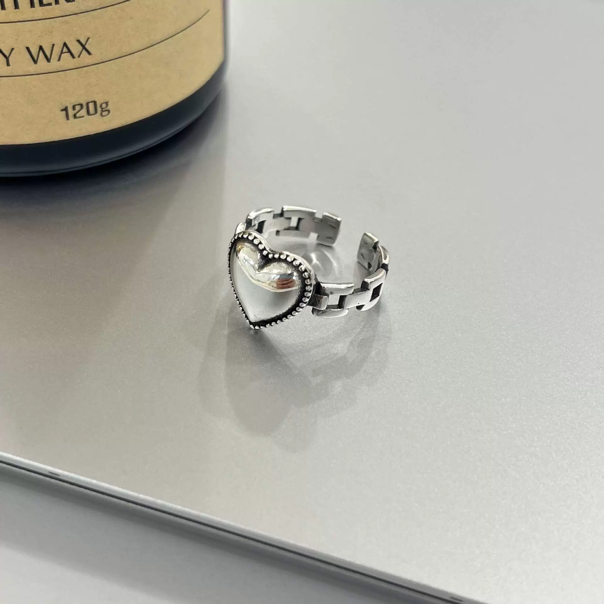 Minimalist love ring for women Korean style fashion personality niche S925 silver open ring stackable internet celebrity index finger ring trend