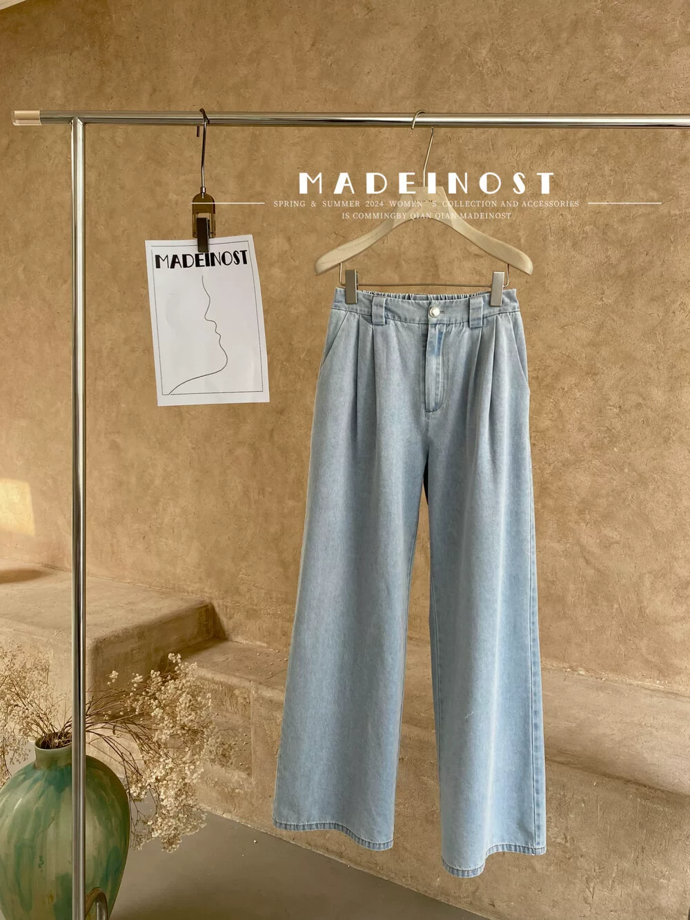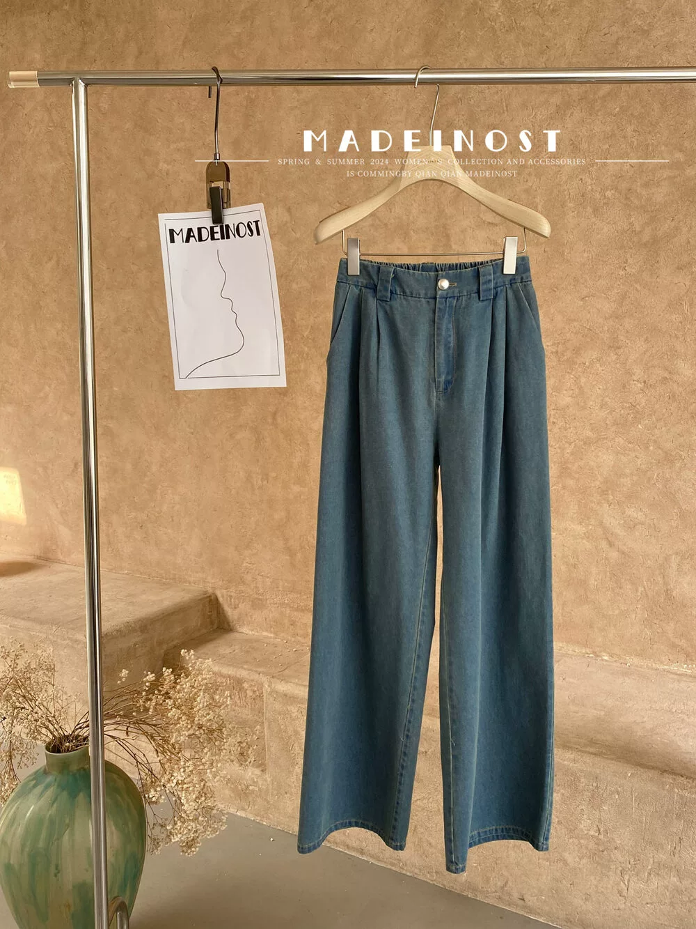 | nameOriginal | Minimalist original pleated elastic waist thin denim trousers |