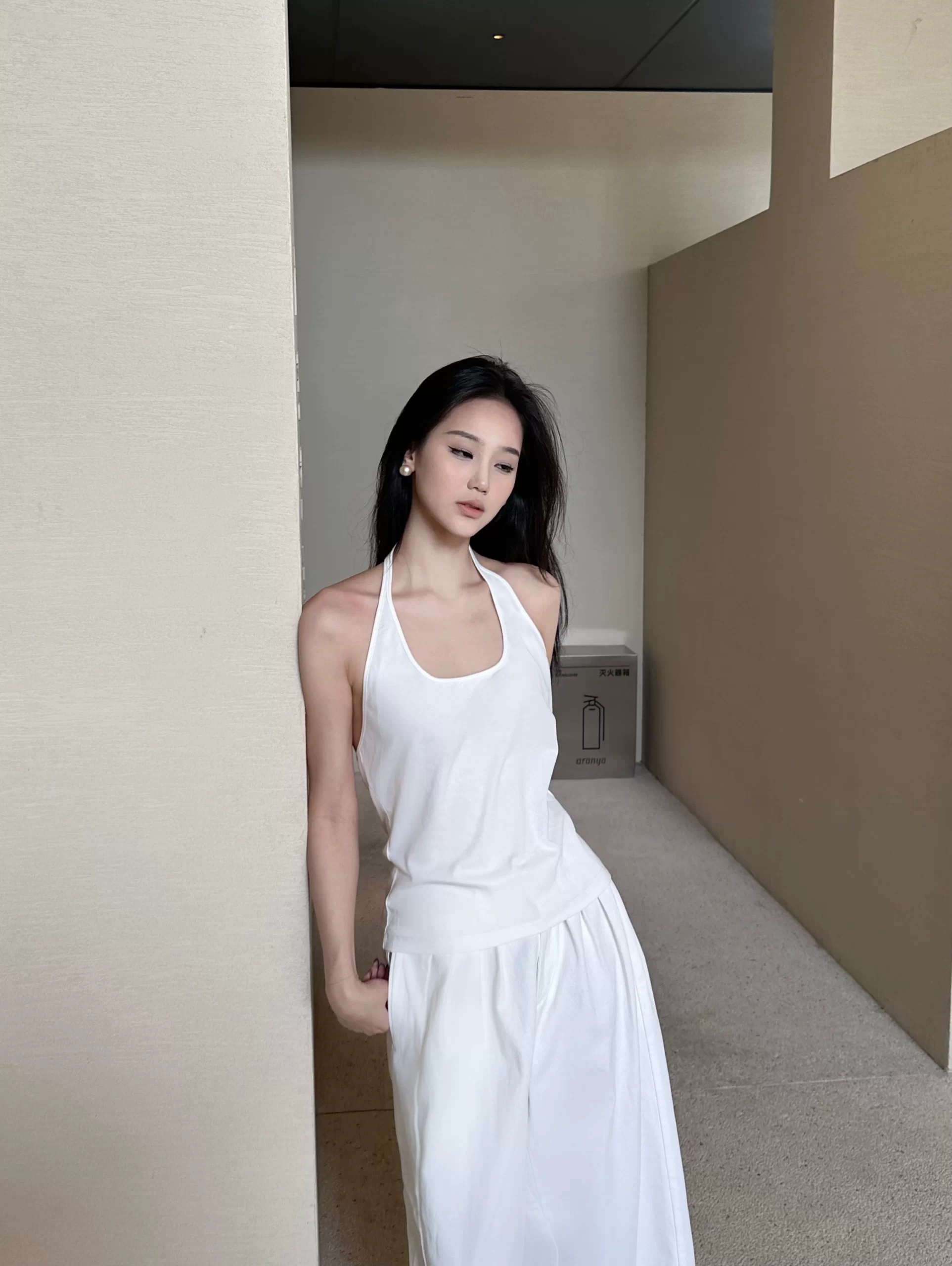 | nameOriginal | Minimalist U-neck backless loose bottoming top with halter neck |