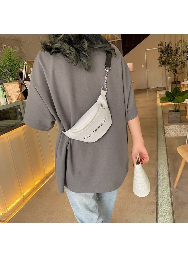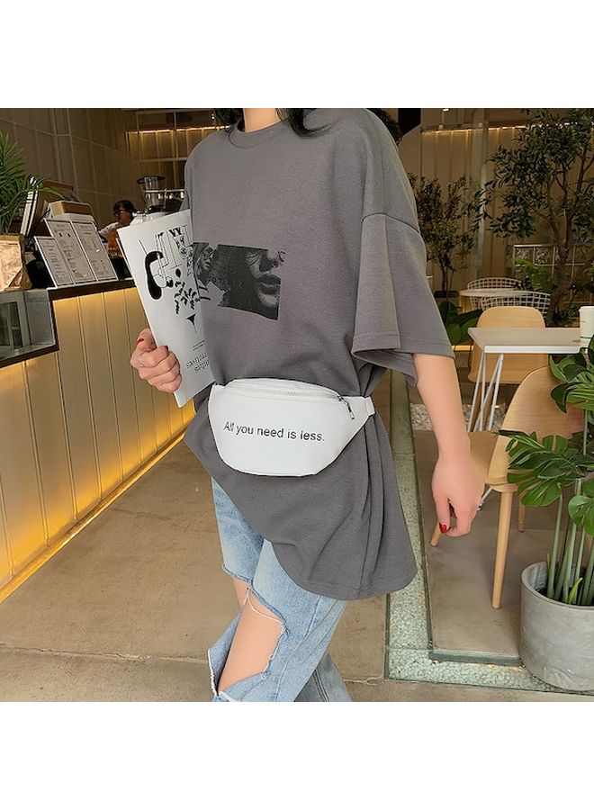 The All You Need Is Less Printed Waistpack in White/Black is the perfect accessory for those who want to keep their essentials close at hand while on the go. This waistpack features a sleek and stylish design with a minimalist “All You Need Is Less” print in contrasting black on a white background. The pack is made from durable materials and features a spacious main compartment with a zippered closure, as well as a front pocket for easy access to smaller items. The adjustable waist strap ensures a comfortable and secure fit for all body types. Whether you’re running errands, going for a hike, or traveling, this waistpack is the perfect way to keep your essentials organized and easily accessible.