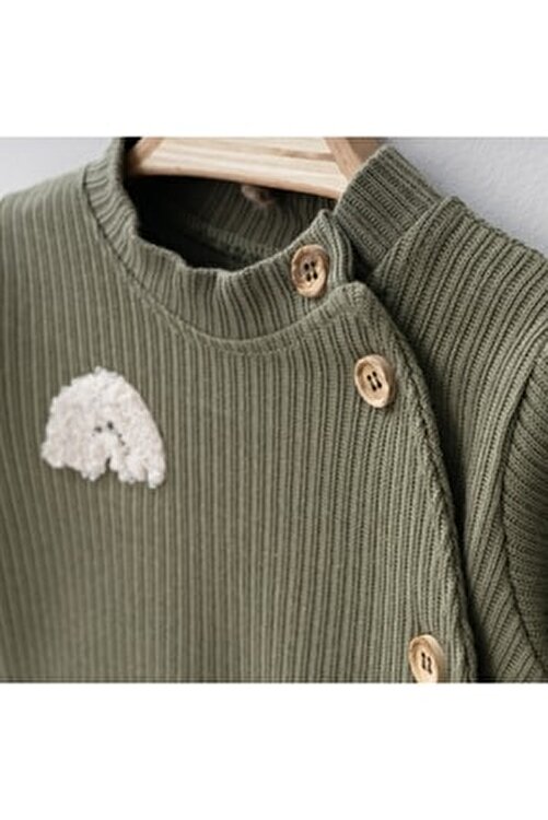 Newborn Baby Boy Rainbow Strain Embroidered Button Detailed 100% Cotton Bottom Top Baby Suit Boy Child 2-Piece Long Sleeve Suit Green 0-18 Months.