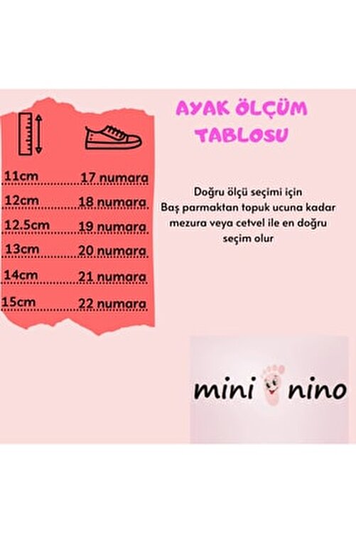 MINININO BABY SHOES FOR BOYS AND GIRLS ARE DESIGNED AS ANATOMICAL BABY SHOES. FLEXIBLE, SOFT AND NON-SLIP RUBBERS ALLOW THEM NATURAL AND RELIABLE MOVEMENT DURING THE FIRST STEPS OF YOUR BABY. OUR SHOES, WHICH CAN BE USED FOR SUMMER AND WINTER, ALLOW YOUR BABY TO BREATHE IN HIS FEET, PREVENTS SWEATING. PROVIDES COMFORT TO YOUR BABY’S FOOT THANKS TO THE INSOLES. OUR ROUND AND WIDE NOSE DESIGNS ARE SPECIALLY DESIGNED TO HELP AND PROTECT YOUR BABY IN FOOT DEVELOPMENT. PLEASE CHOOSE AMONG THE PRODUCT PHOTOS ACCORDING TO THE FOOT NUMBER MEASUREMENT CHART