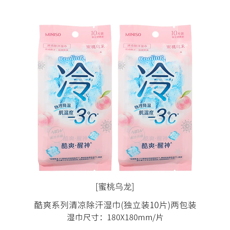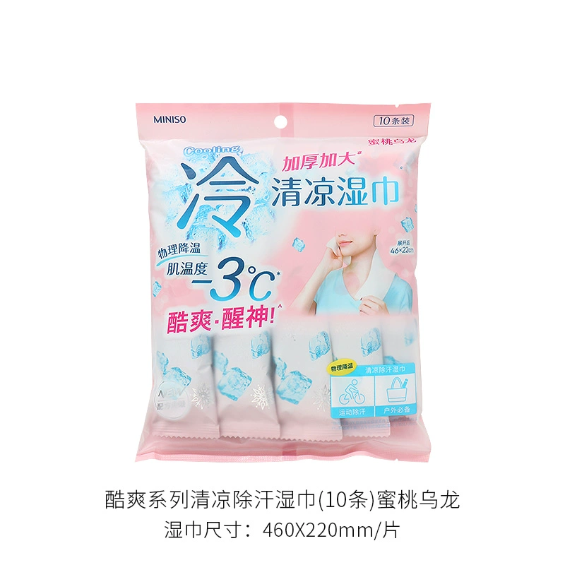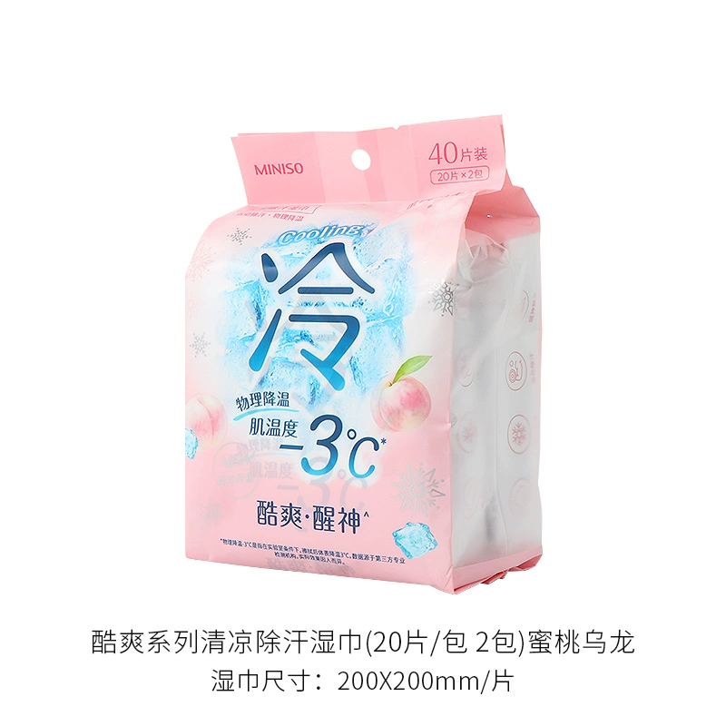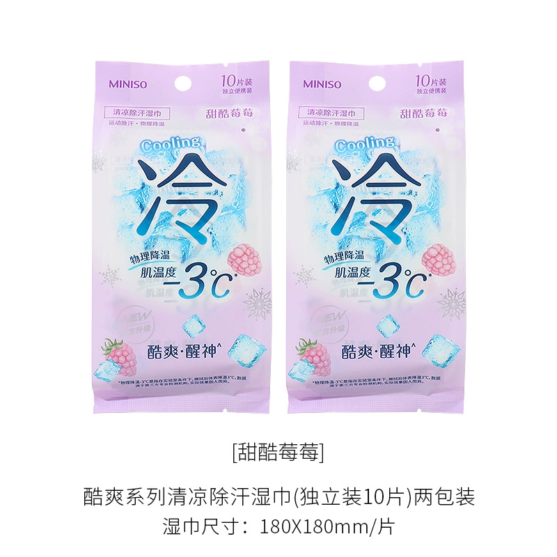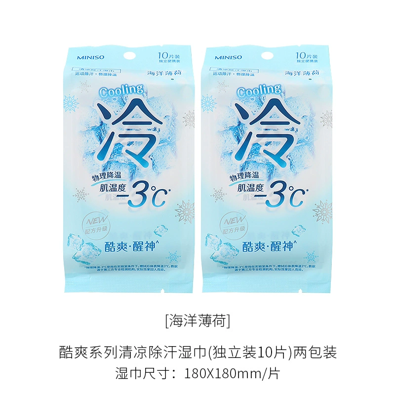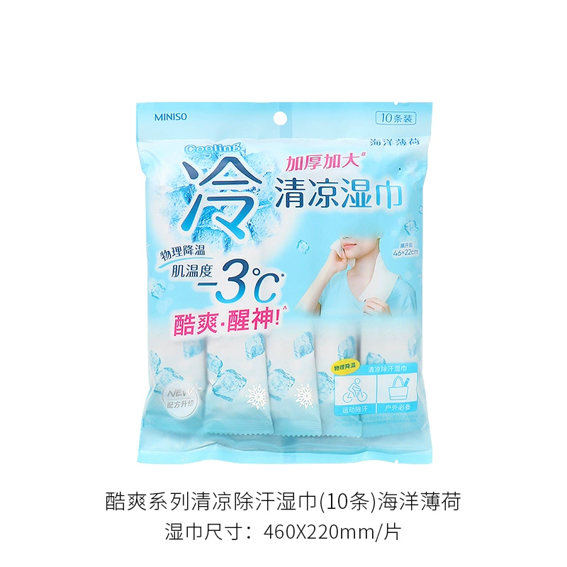 | nameOriginal | miniso's cool series of cool and deodorizing wet wipes, cool and refreshing, individually packaged wet wipes |