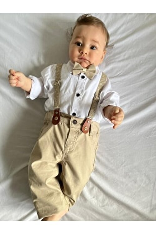 | nameOriginal | Minizade Patterned Salopet Bow Tie Plain White Shirt Pants Baby Salopet Triple Set |