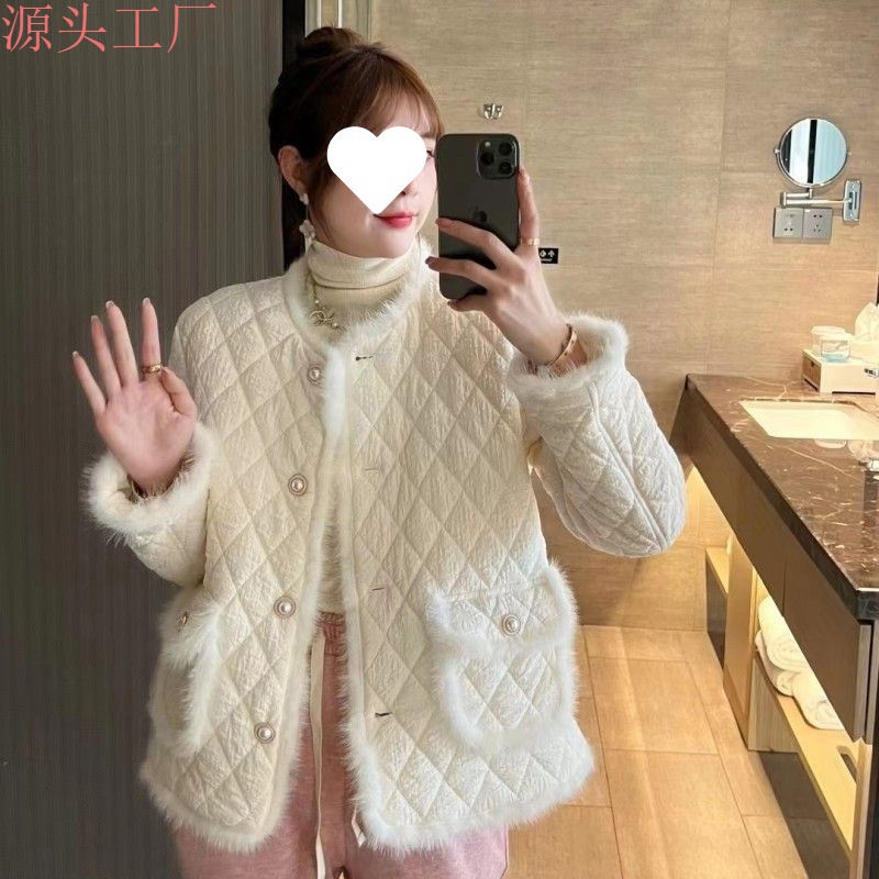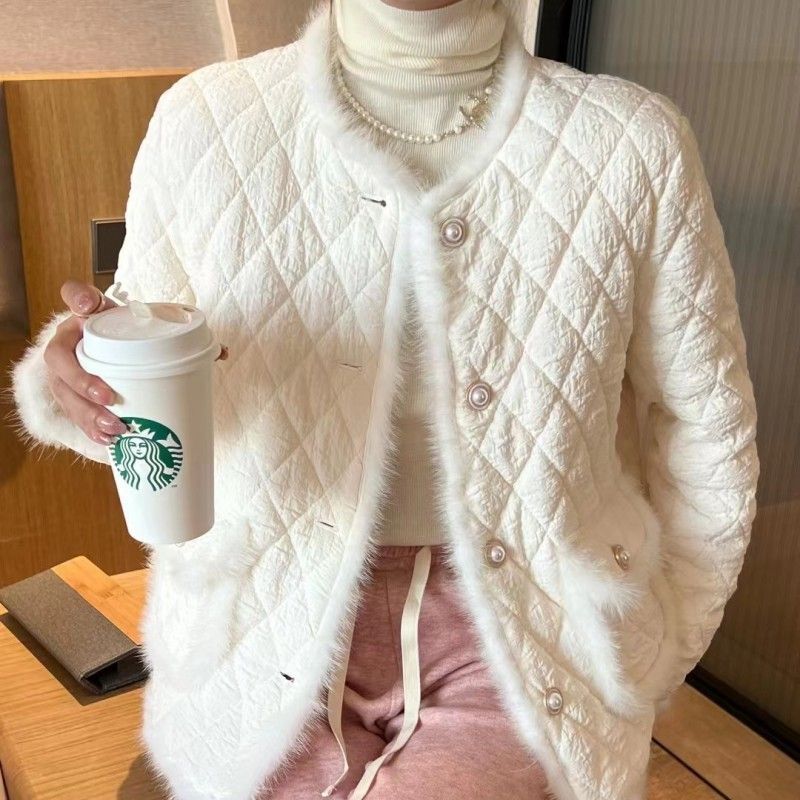 Mink fur socialite Chanel style coat 2024 Winter new white duck down light down jacket Women's Small top