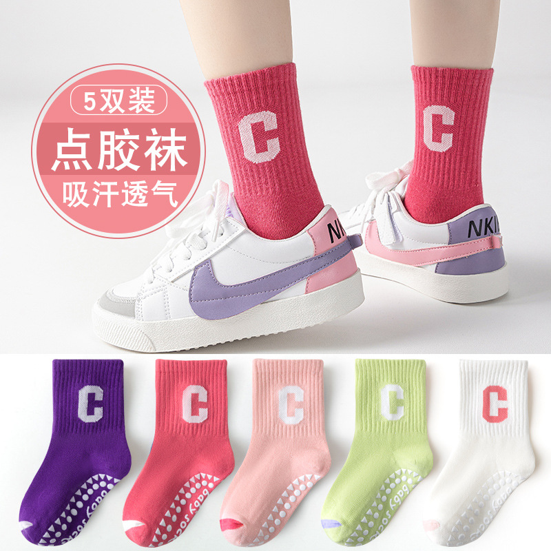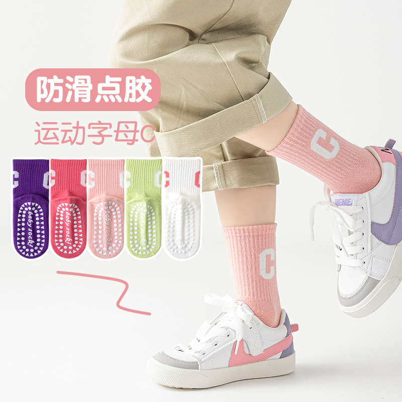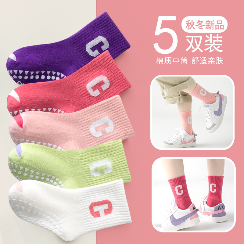 Minqi autumn and winter children's floor socks dispensing non-slip baby socks medium and big children letter yoga socks girls trampoline socks