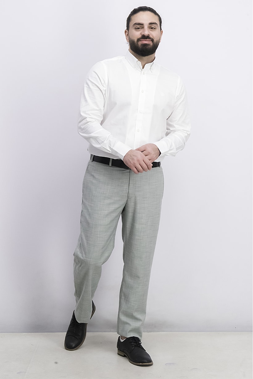 Care : Machine washable, Fit : Regular fit, No of pockets : 4, Pant Style : Dress, Size shown : Inches, Stretch Type : No stretch, Types of Jeans Rise : Mid rise, Bottom Closure : Button, Zipper fly, Bottom Style/Pattern : Belt loops, Disclaimer : Product color may slightly vary due to photographic lighting sources or your monitor settings., Fabrics : 80% Polyester, 17% Viscose, 3% Spandex, Occasion : Semi Formal, Pattern & Print : Chambray , Color Family : Green,