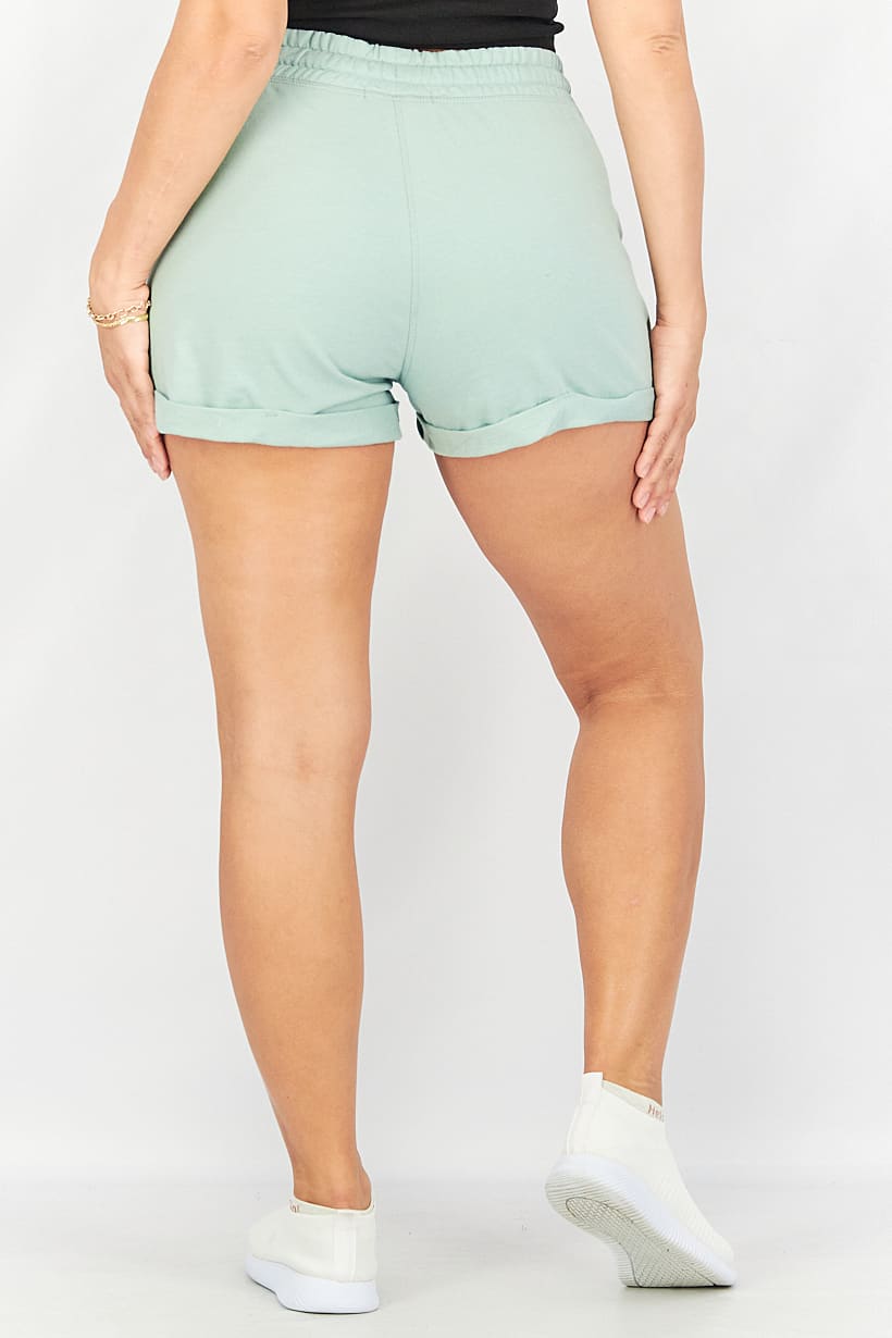 Mint Drawstring Shorts with Cuffed Hem for Women.