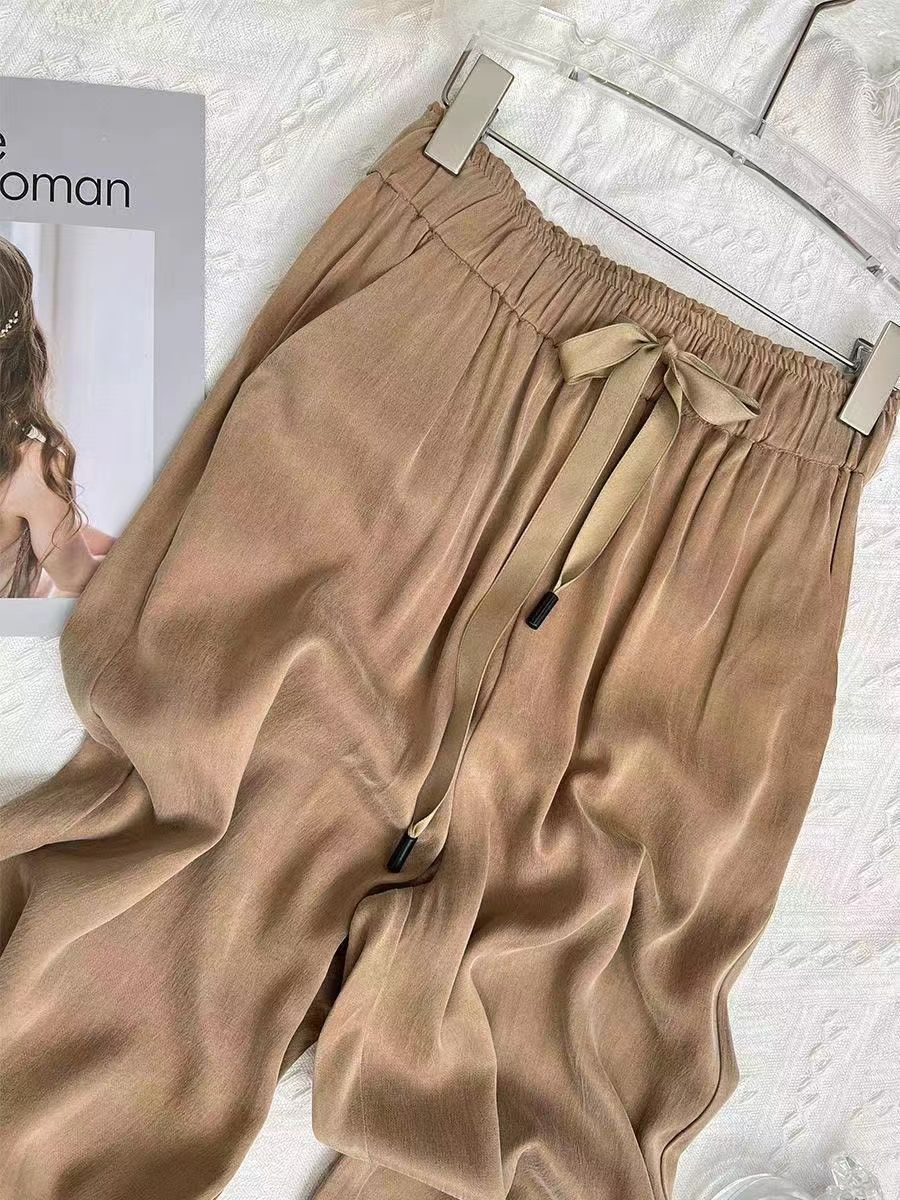 | nameOriginal | Mint Green Ice Silk Narrow Wide Leg Pants Women's Summer Thin New Loose Straight Hide Meat High Waist Anti-mosquito Pants |