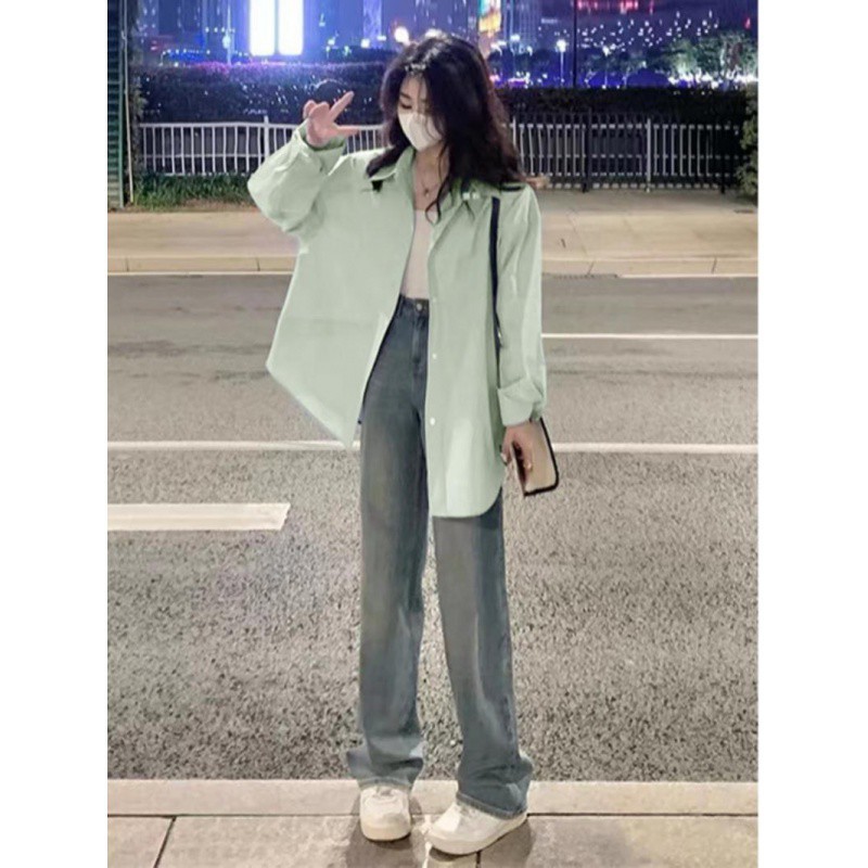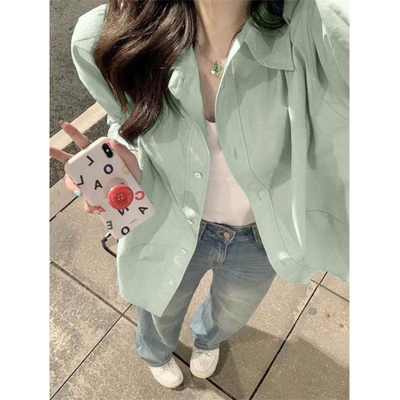 | nameOriginal | Mint Mambo Early Spring Green Sunscreen Shirt Women's Summer French High-end Artistic Fresh Top |