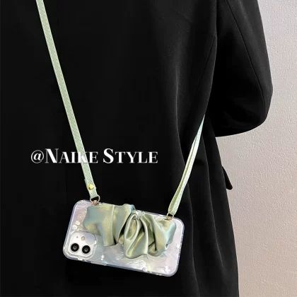 Mint Mambo green wristband suitable for Samsung s24+/s23/s22/s20/s21FE mobile phone case transparent note20/s10/a31 feather yarn a52 women a51 anti-fall A71/A54/a53