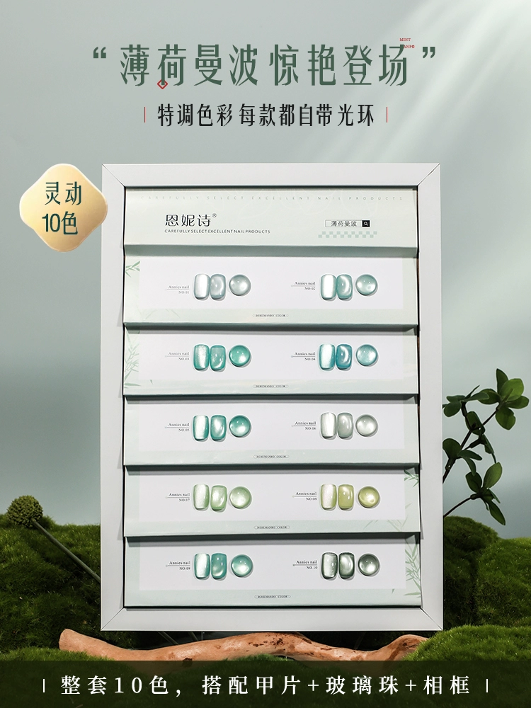 Mint Manbo Wind Flash glass beaded cat eye nail polish 2025 new autumn and winter white nail phototherapy glue