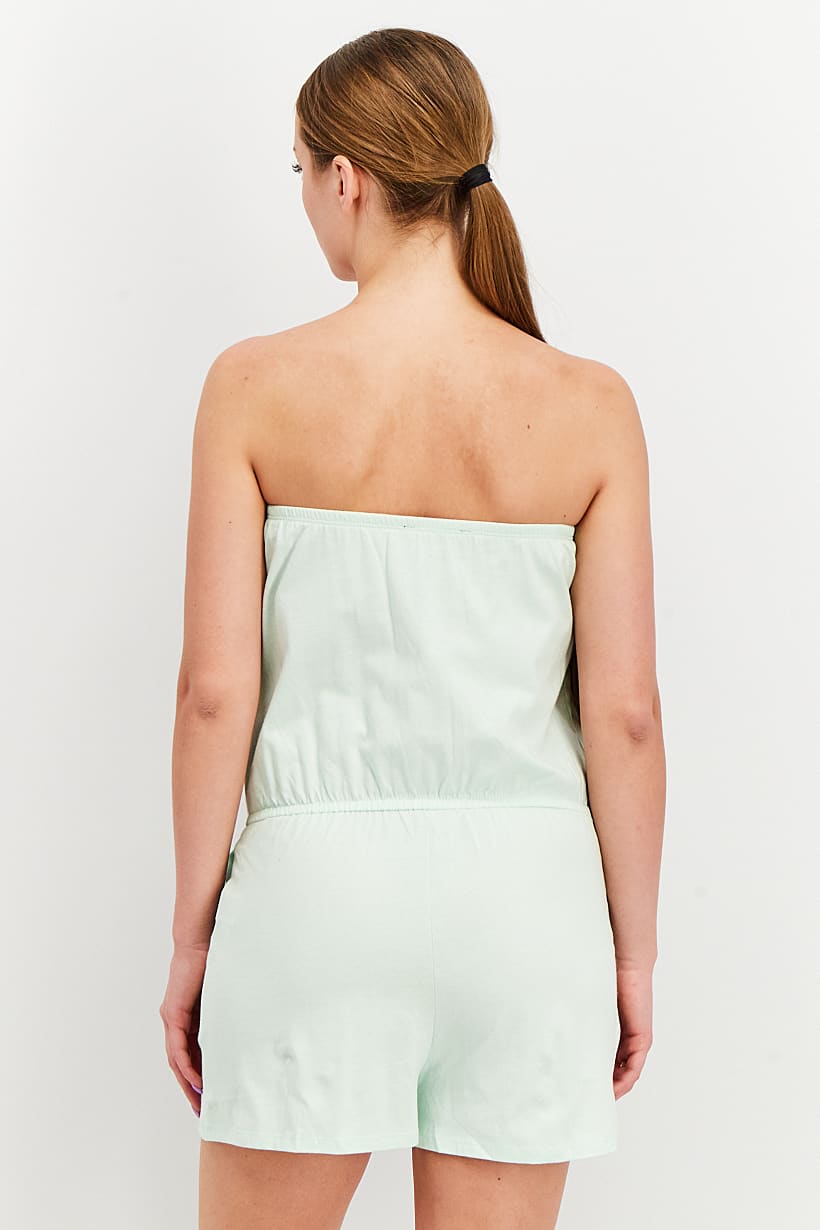 Care : Machine washable, Fit : Regular fit, Jumpsuit Type : Playsuits, Size shown : UK, Types of Neckline & Collar : Straight Across , Types of Sleeve : Strapless, Disclaimer : Product color may slightly vary due to photographic lighting sources or your monitor settings., Fabrics : 100% Cotton, Occasion : Casual, Pattern & Print : Plain/Solid, Types of Closures : Pull on, Color Family : Green,