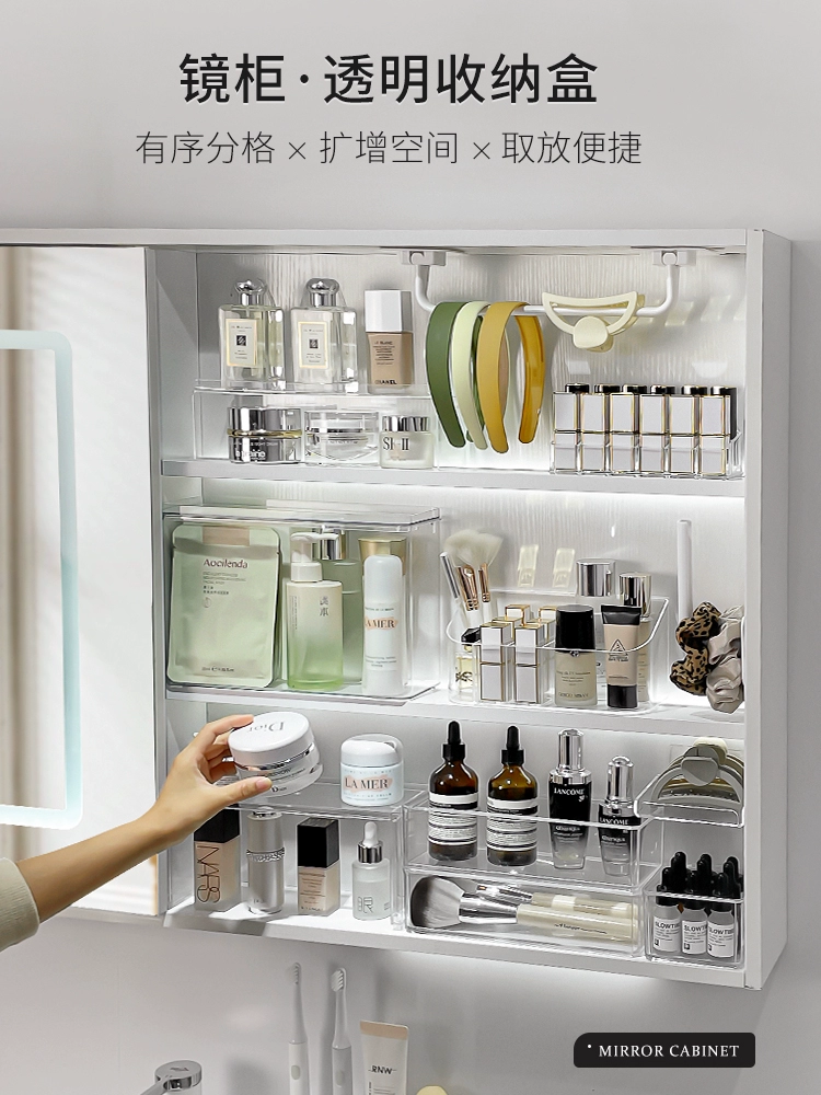 | nameOriginal | Mirror cabinet storage box bathroom bathroom cabinet storage rack wall-mounted layered partition desktop cosmetics storage artifact |