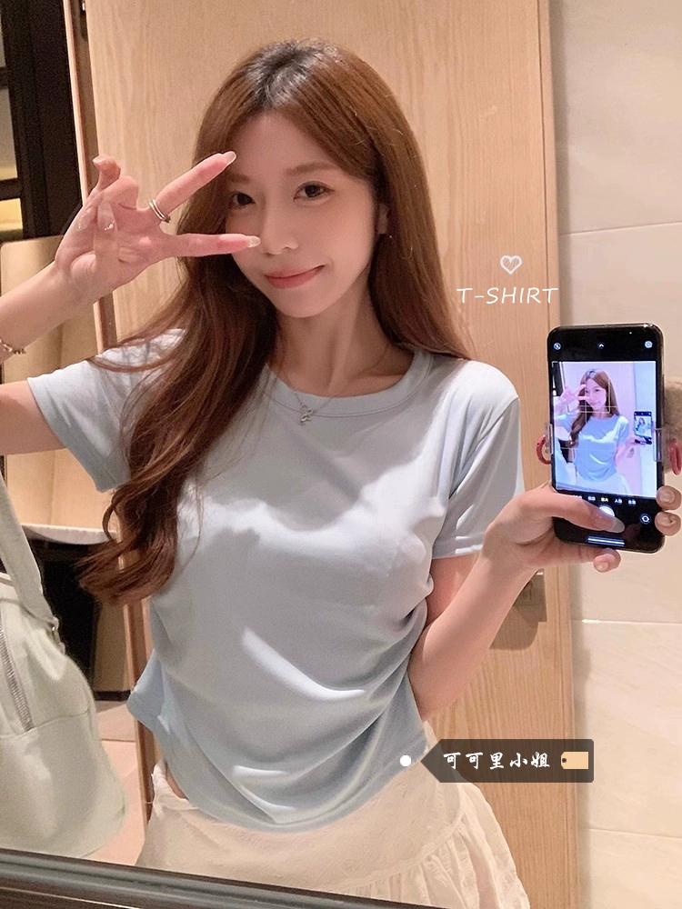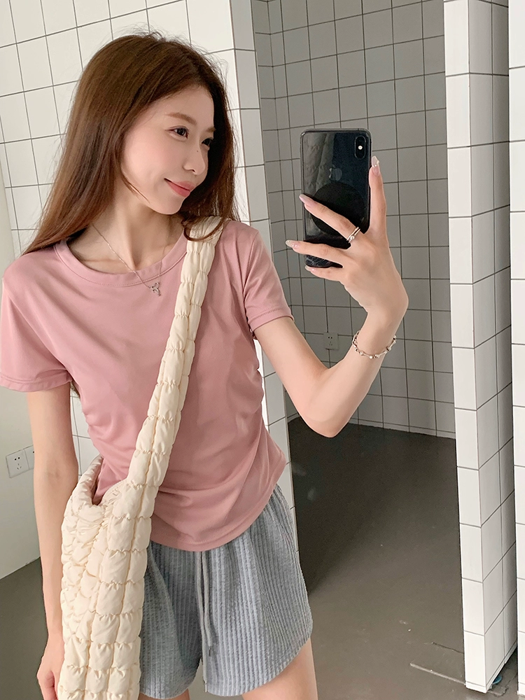 Miss Cocoli's slim-fitting right-shoulder top with slim short sleeves