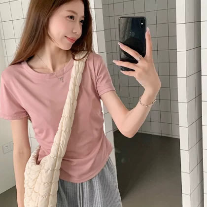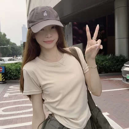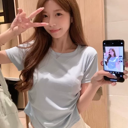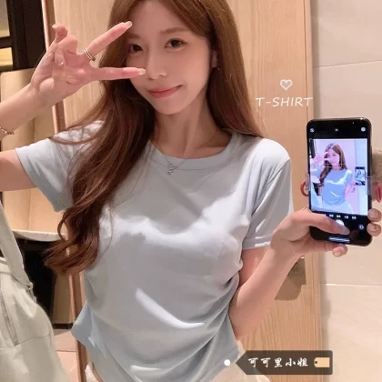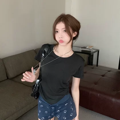Miss Cocoli's slim-fitting right-shoulder top with slim short sleeves