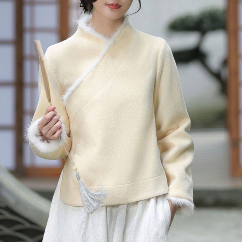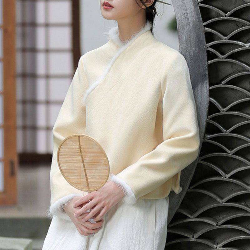 Miss fish 2022 autumn and winter New Slim retro style short top diagonal cardigan cotton-padded clothes quilted Zen cotton-padded clothes