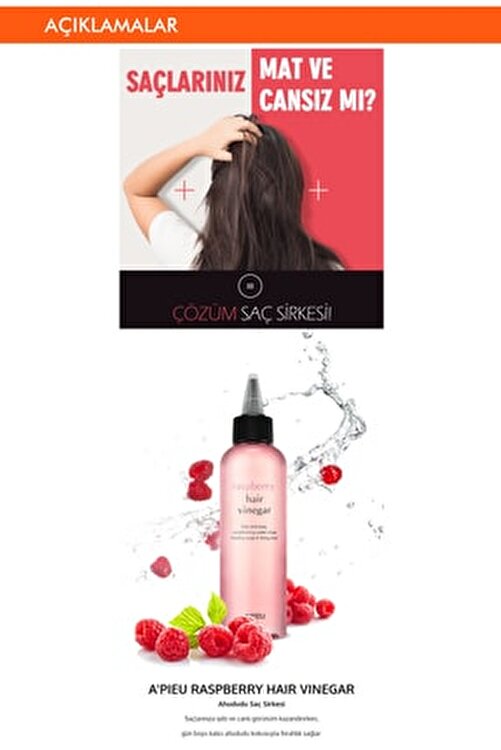 RASPBERRY CONTENT HAIR LUMINOUS HAIR – Provides refreshment with lasting raspberry scent all day long while giving your hair sparkle and vibrant appearance, -Maintains the ideal pH level by regulating the balance of oil and moisture in the hair, -Provides delicate care of the scalp, -Provides smooth and shining hair with health, -USES Need:Those who want to have shiny and well-groomed hair, -INSTRUCTIONS FOR USE:Apply to clean washed hair with massage movements starting at the bottom of the hair with massage movements and rinse with water, -MAIN INGREDIENTS: Vinegar Raspberry -USE TIME: Night/Day -Returns of unpacked products are not accepted,