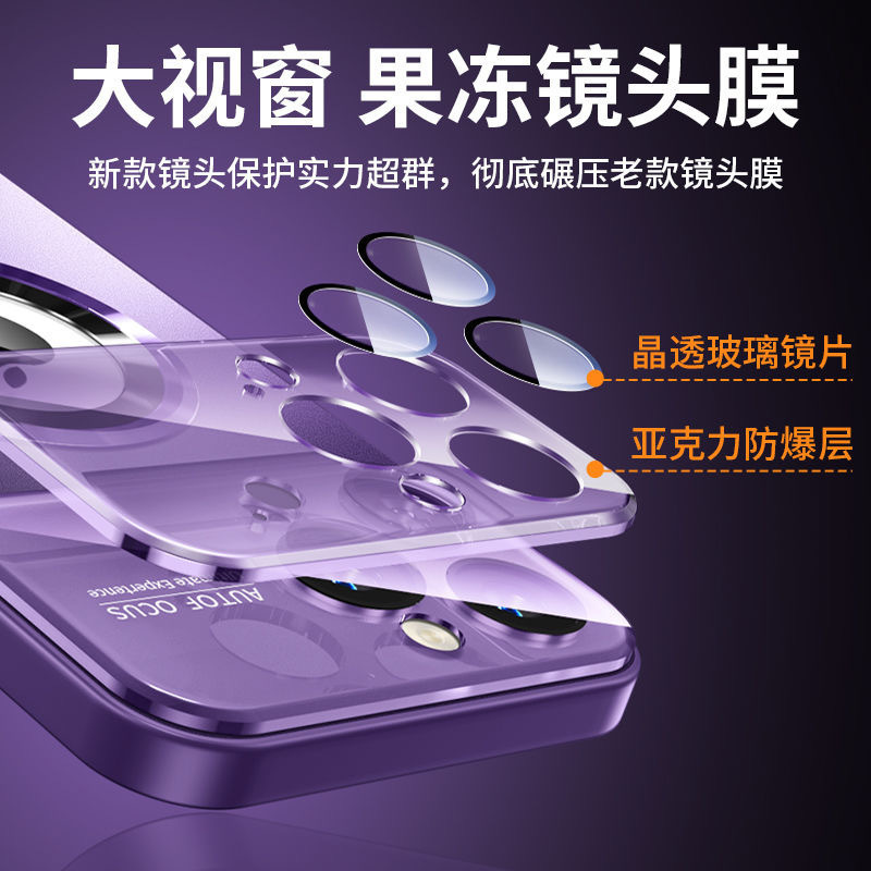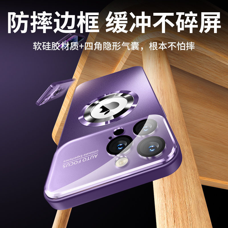 Missing standard magnetic attraction large window frosted glass for Apple 15 mobile phone case anti-fall Apple 14 with lens film hard cover